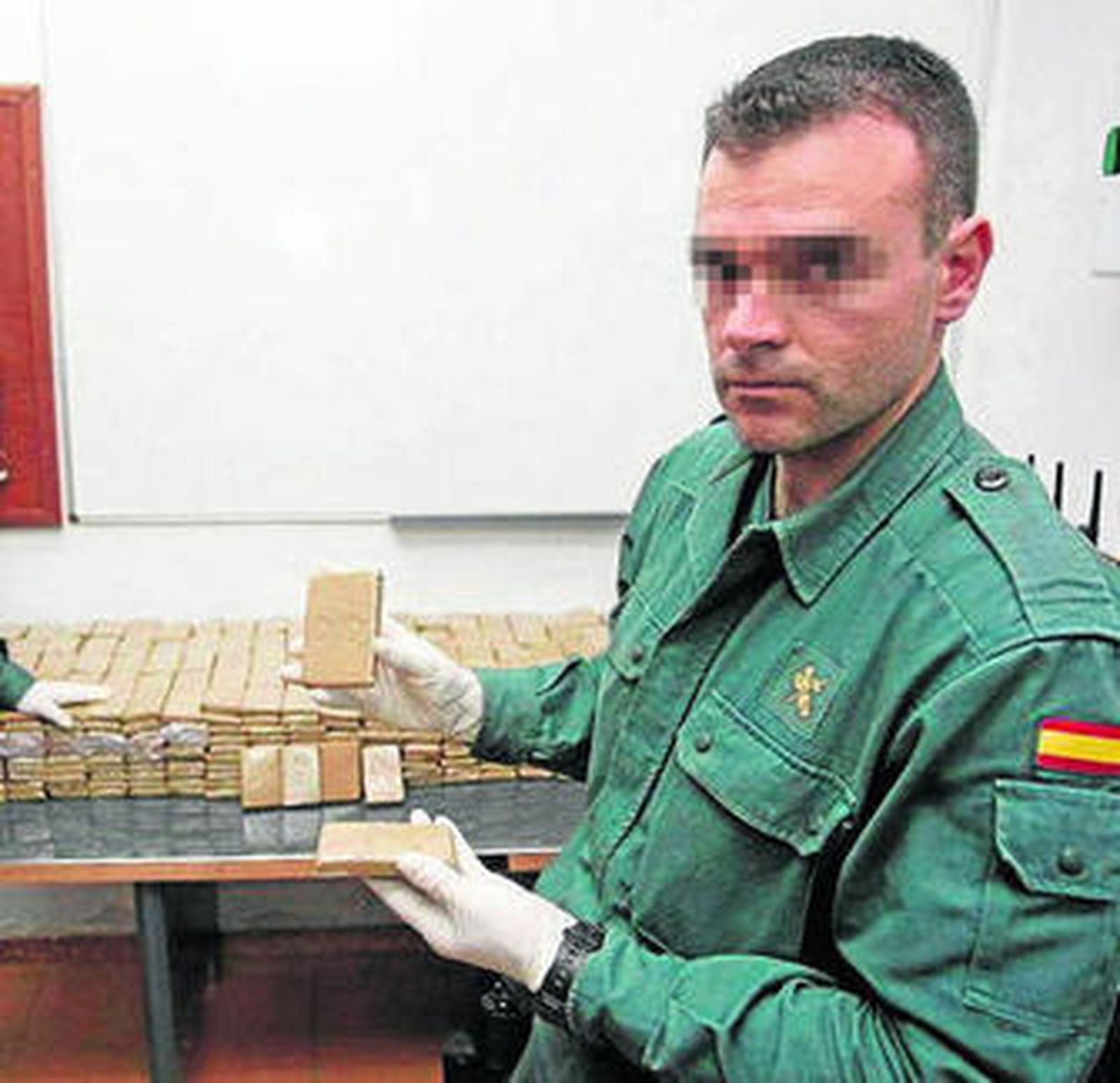 Un agente de la Guardia Civil muestra parte del alijo.