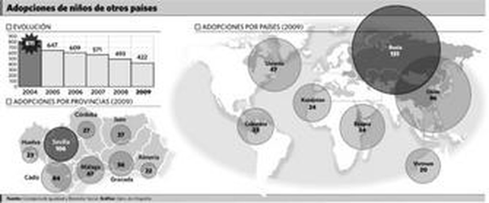 En los últimos cinco años, de los 811 expedientes de adopción internacional resueltos en 2004 a los 422 niños en el año que concluyó el pasado jueves, un 92% menos.