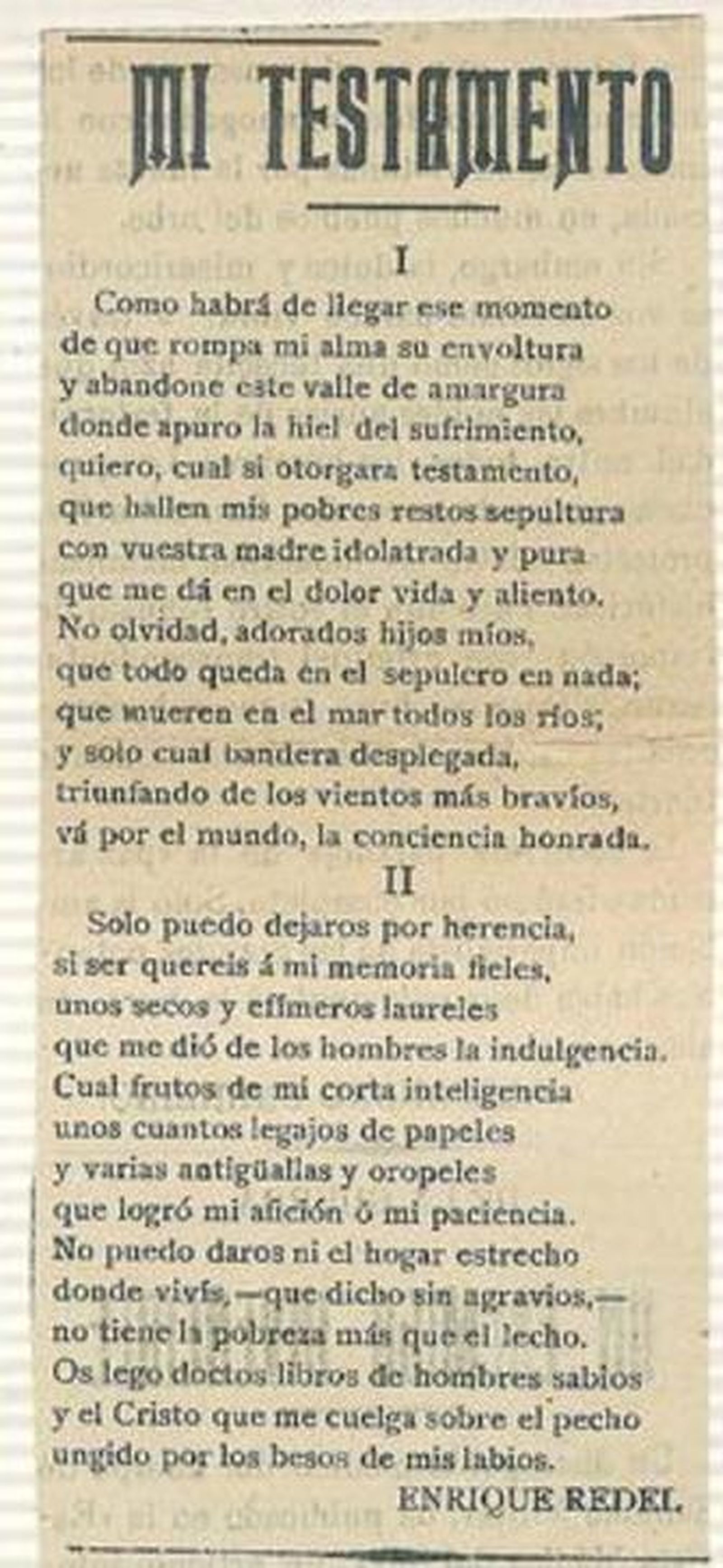 Enrique Redel es el escritor de su generación cuyo recuerdo ha llegado más vivo a nuestros días, y no es porque tenga una calle dedicada en las inmediaciones del lugar donde nació o una placa en la casa en que falleció hace ahora un siglo. Si se exceptúa a Antonio Fernández Grilo, cuyo poema más popular, el dedicado a las Ermitas, es un plagio del cacereño Antonio Hurtado, este poeta, nacido junto a las Rejas de don Gome en 1872, es el único al que se le ha reeditado parte de su obra recientemente, que es lo más importante que le puede ocurrir a un escritor.