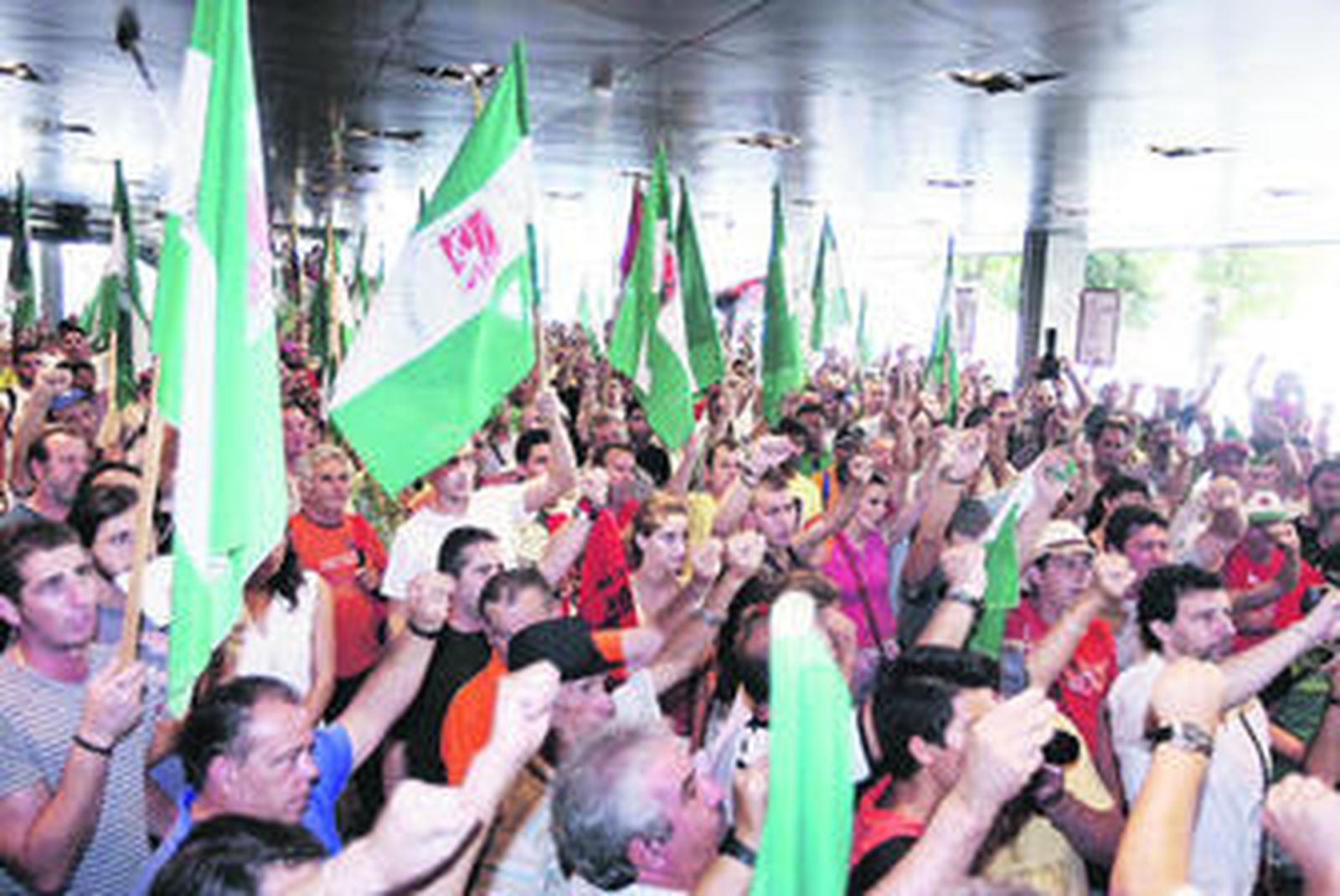 Procedentes de Pedrera, Martín de la Jara, Écija, Jódar (Jaén) o Posadas, los trabajadores estuvieron liderados por el alcalde de Marinaleda y parlamentario andaluz por IU, Juan Manuel Sánchez Gordillo. "Nos hemos ido voluntariamente de la estación porque nuestro objetivo es llamar la atención del Gobierno por la mala gestión de la crisis económica, no molestar a los ciudadanos", dijo Sánchez Gordillo.
