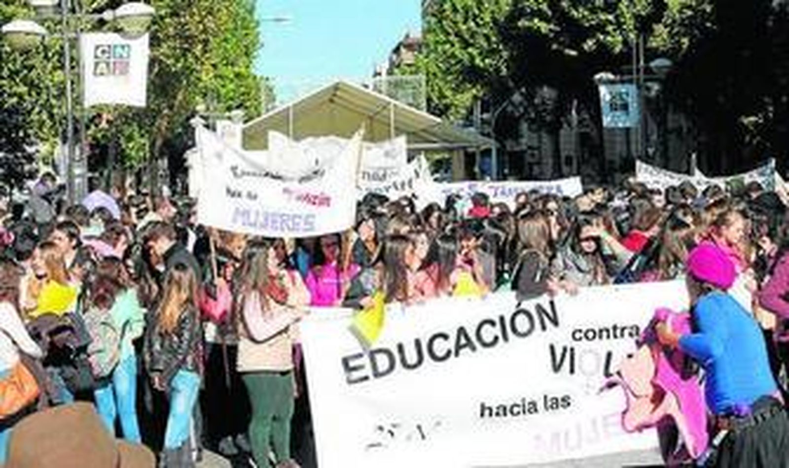 Las distintas administraciones y colectivos, como la escuela de Arte Dramático y los institutos, salen a la calle para denunciar el maltrato a las mujeres
