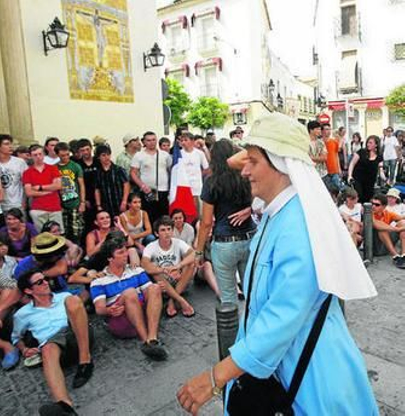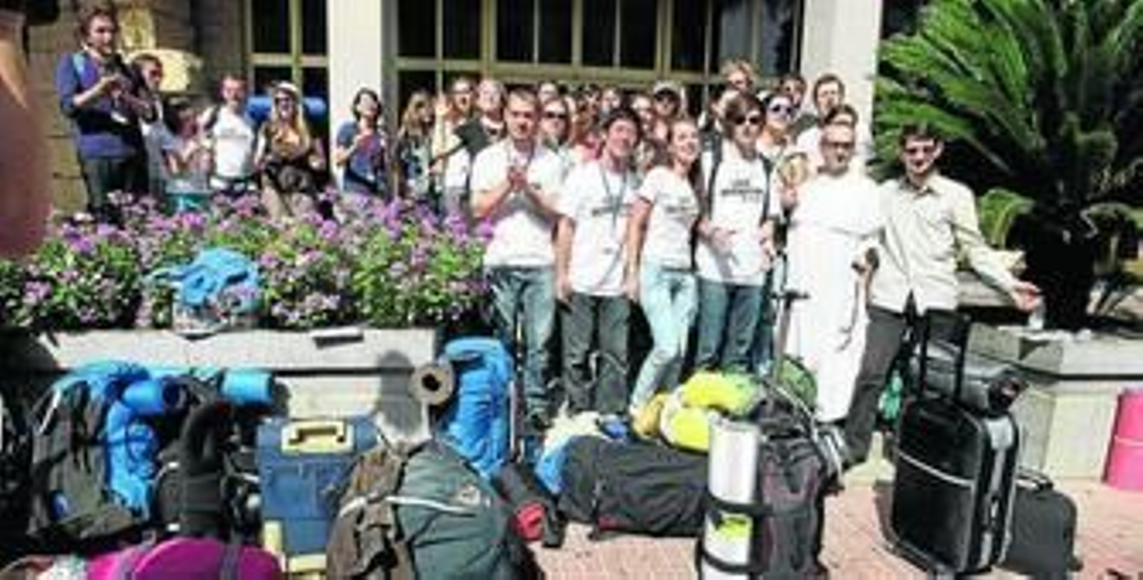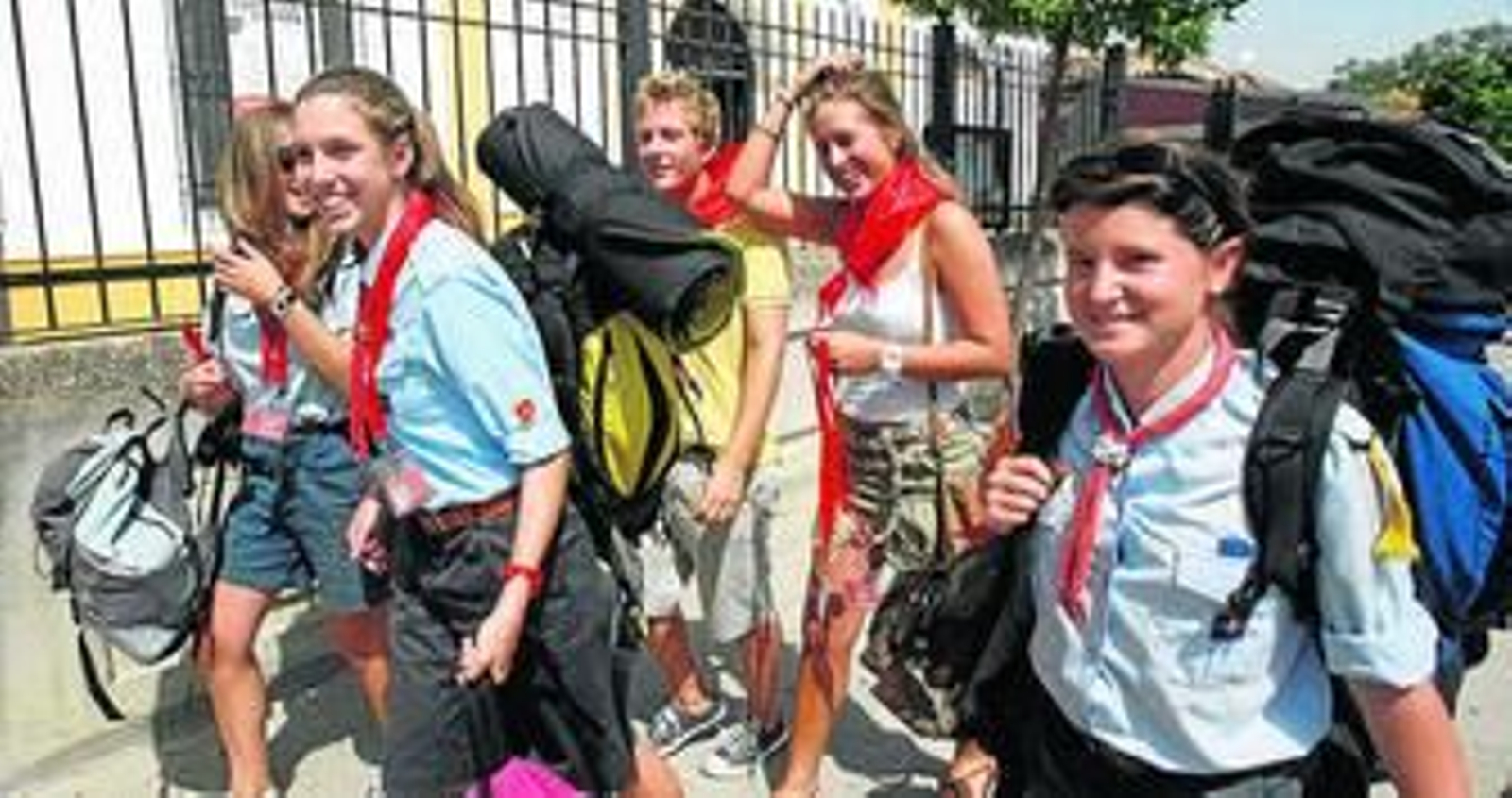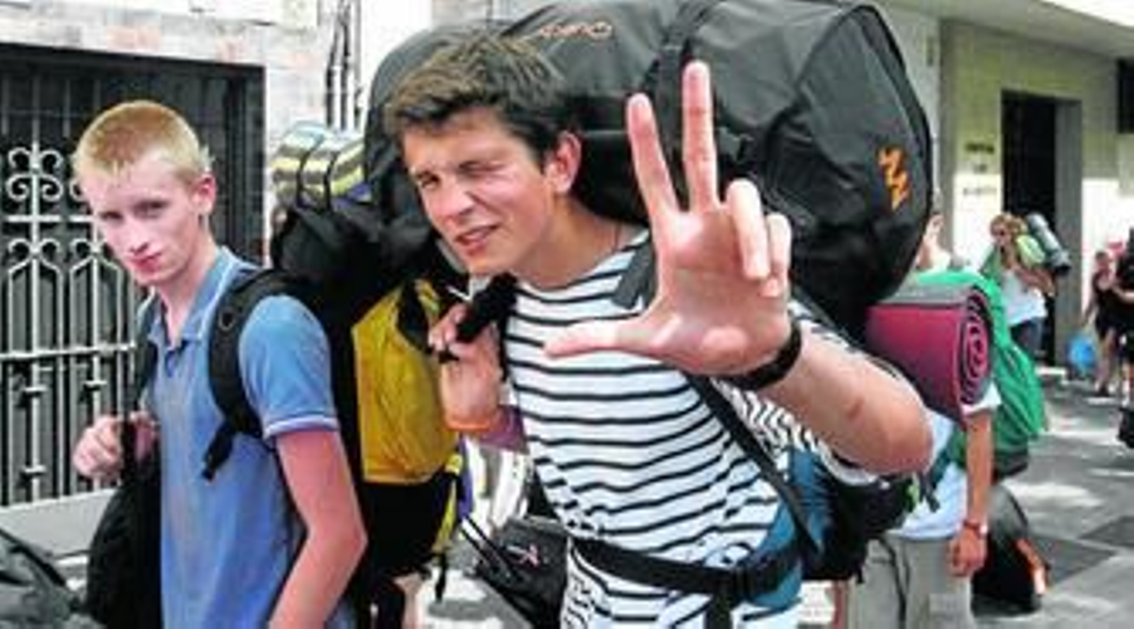A primera hora de la tarde llegó otro grupo de franceses a la capital. Esta vez se concentraron en la parroquia de la Trinidad. Una decena de voluntarios esperaban con expectación la llegada de los peregrinos, que se retrasaron 30 minutos de la hora prevista. La calle Lope de Hoces se llenaba de jóvenes cargados con mochilas y gorras, colorados por el calor cordobés. Los voluntarios se agolpaban en las puertas para darles la bienvenida, un "¡hola!" que suponía el primer acercamiento.