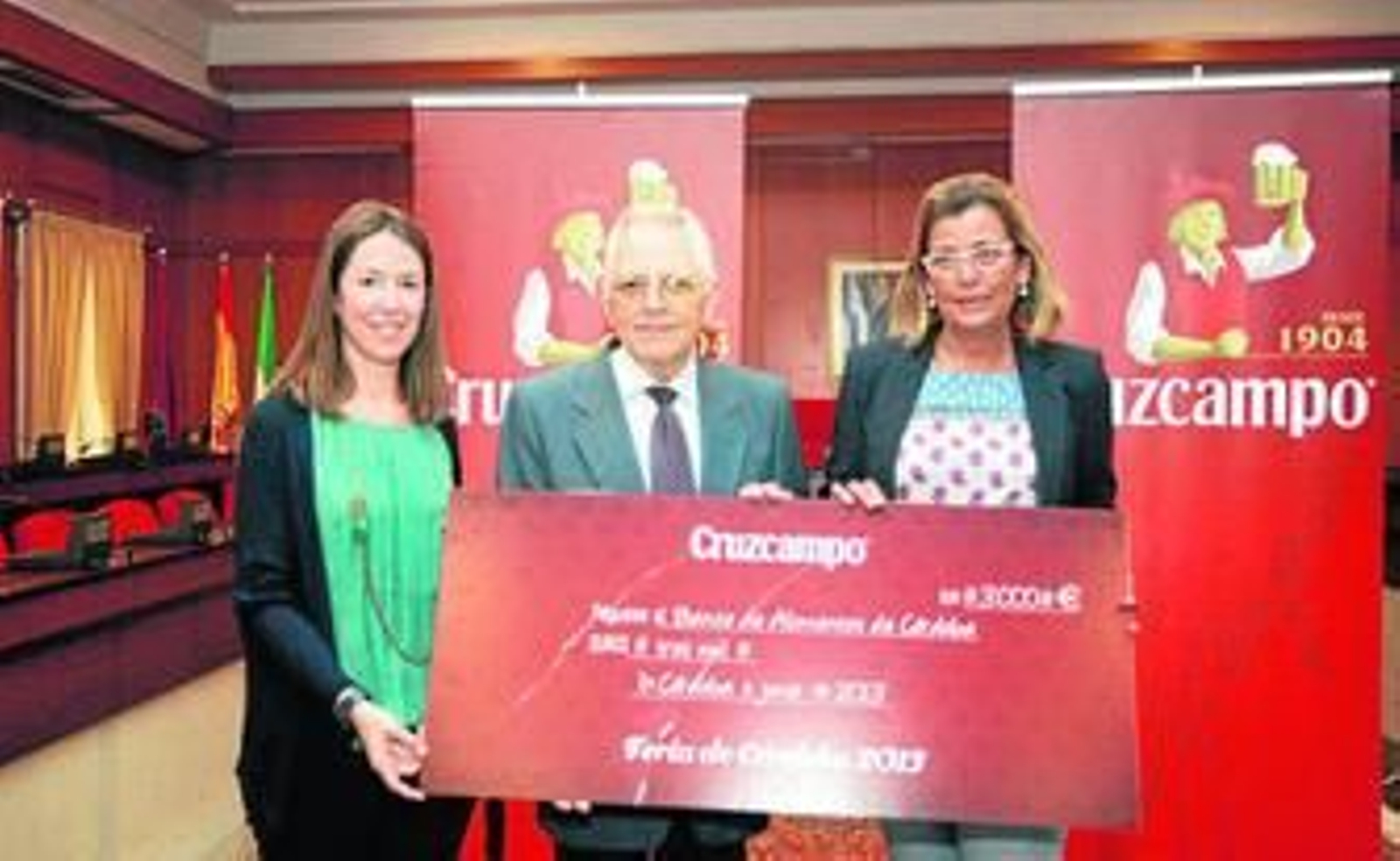 Cruzcampo hizo entrega ayer al Banco de Alimentos de Córdoba de un cheque por valor de 3.000 euros recaudados durante la pasada Feria gracias a la participación de los cordobeses en la iniciativa Que no te falte la Feria. Con esta campaña, la empresa cervecera se solidarizaba con "la difícil situación por la que están atravesando muchos ciudadanos y pretendía aportar su granito de arena para que disfrutasen de una de sus fiestas más importante destinando casi una cuarta parte del importe de su campaña de feria en premios en metálico para los cordobeses y en el citado donativo", según señaló ayer su responsable de Sponsoring, Ada Bernal. La iniciativa de la multinacional ha contado con la participación de 23.000 cordobeses y los primeros cien premios se repartieron en menos de cuatro minutos.