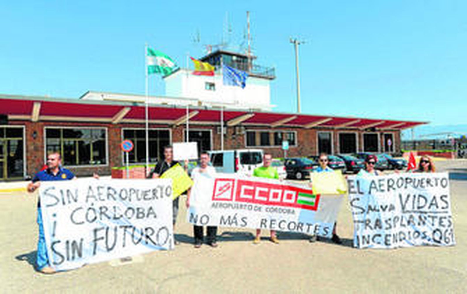 Un grupo de empleados de Aeropuertos Españoles y Navegación Aérea (AENA) comenzaron ayer un encierro en el interior del aeródromo como muestra de rechazo por los "brutales" recortes que prevé acometer el Gobierno central; unos ajustes, que, en opinión de CCOO y UGT, podrían llegar al 60% en Córdoba. En principio, la medida de presión se reduce a estas últimas 24 horas, aunque los sindicatos no descartan repetir el encierro en las próximas semanas si así lo decidieran sus respectivas ejecutivas nacionales. Los colectivos denunciaron que la intención del Ministerio de Fomento es dejar la plantilla de este aeropuerto en seis trabajadores, aproximadamente el 20% de los 31 que trabajan actualmente en estas instalaciones. A su juicio, el objetivo del Gobierno es crear un aeródromo "fantasma" para después "cerrarlo definitivamente".
