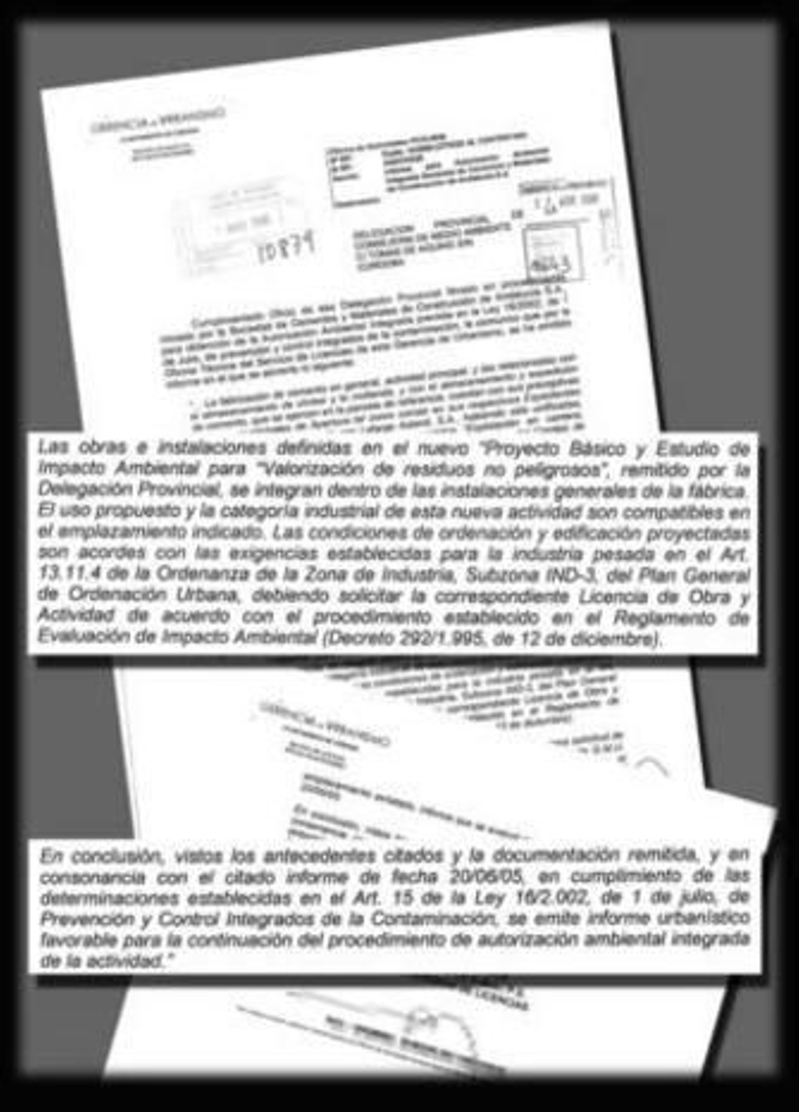 En el mismo documento, además, se hace alusión a un anterior informe emitido también por la GMU en mayo de 2005 con motivo de la solicitud de autorización ambiental integrada, que también era "acreditativo de compatibilidad" de la actividad en el emplazamiento que ocupa. Todo esto lleva a la conclusión, según se pone por escrito, de emitir un informe urbanístico "favorable" para la continuación de autorización ambiental de la actividad, ya que el siguiente paso correspondía a la Junta de Andalucía, quien también dio el visto bueno.