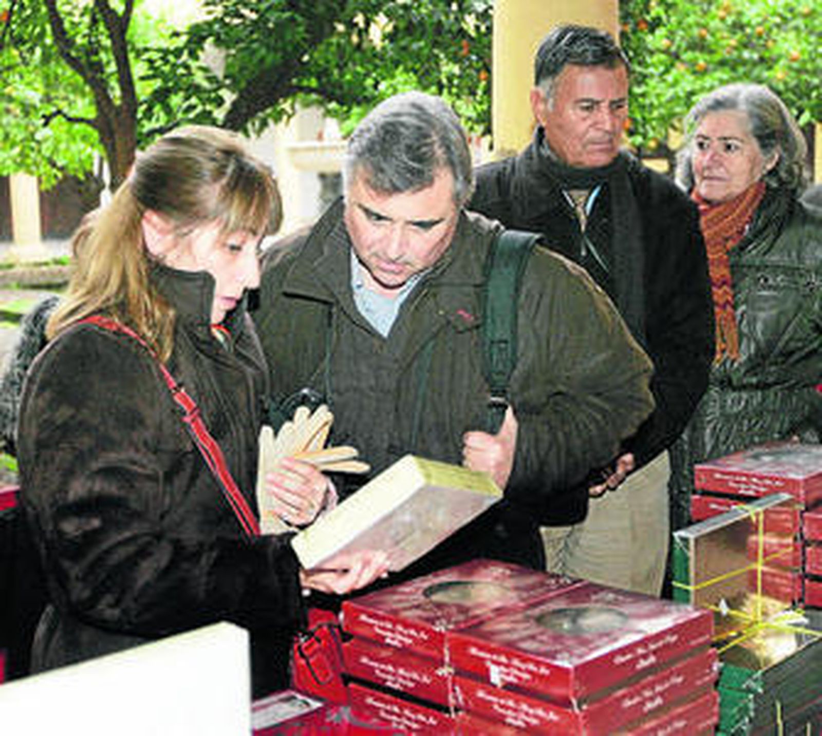 En un auténtico desafío a los sentidos, principalmente al del gusto, quien pasee por el patio del Palacio Episcopal puede adquirir también los tradicionales polvorones, turrones y mantecados con los que agasajar a familia y amigos durante las múltiples reuniones, comidas y cenas que se suceen con motivo de la Navidad. Entre las delicias que se pueden encontrar tampoco hay que dejar a un lado a los mazapanes, que se ofertan en todos los tamaños y formas posibles y entre los que destaca uno enorme realizado en forma de pez por las religiosas del convento de Santa Clara de Estepa. Otra innovación viene d el mano de las monjas de Santa Ana y San José de Córdoba, que han elaborado panettones con miel, un postre tradicional de la Navidad en Milán realizado a base de pasas y frutas confitadas.