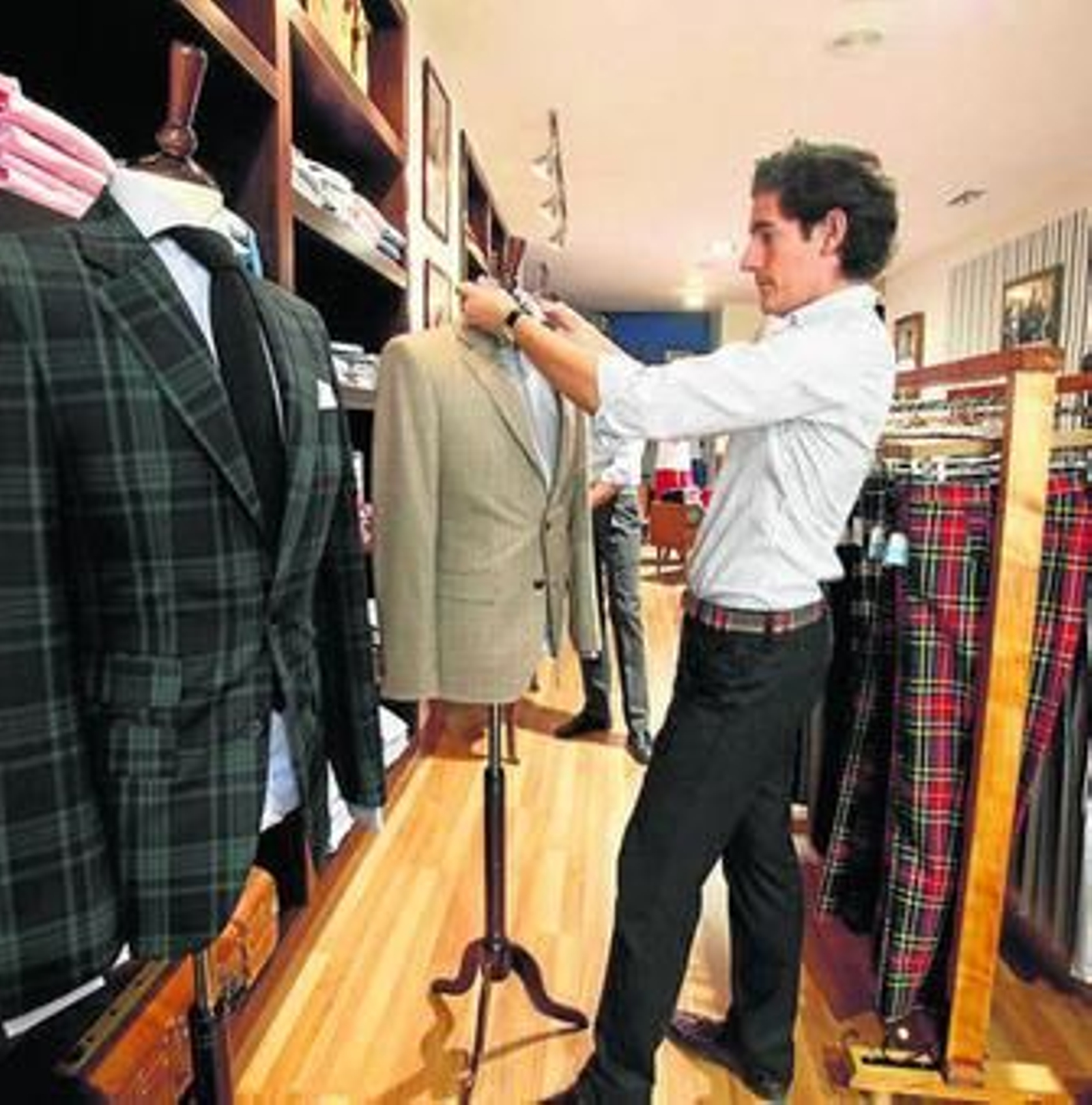 El local donde se vende esta ropa exclusiva también tiene una apariencia muy personal que transporta al cliente a una tienda clásica: fotografías de tenistas como René Lacoste y un cuadro del icono de la moda masculina George Clooney presiden las paredes de este establecimiento donde es fácil encontrar algo que guste.