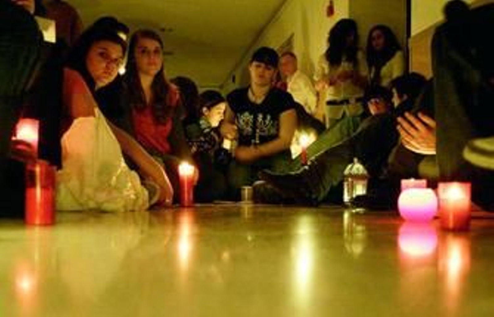 La velada literaria del terror en el Maimónides comenzó con la recepción de los asistentes y una invocación al diablo, en concreto, la que hace la Celestina en la obra para lograr que Melibea se enamore de Calisto. Poco a poco, el profesor los fue guiando a través de las escaleras hasta llegar a la tercera planta del edificio, mientras el tañir fúnebre de las campanas y una música terrorífica inundaban el centro. Y es que es en la parte alta del instituto "donde, según su propia leyenda, vive el fantasma del Maimónides", indicó Ríos.
