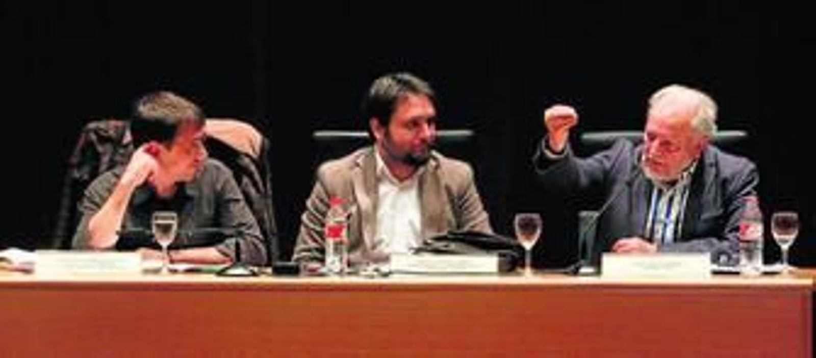 Anguita y Monedero asisten a una conferencia en el Rectorado El excoordinador general de IU sostiene que la UE "que hoy tenemos es una auténtica impostura"