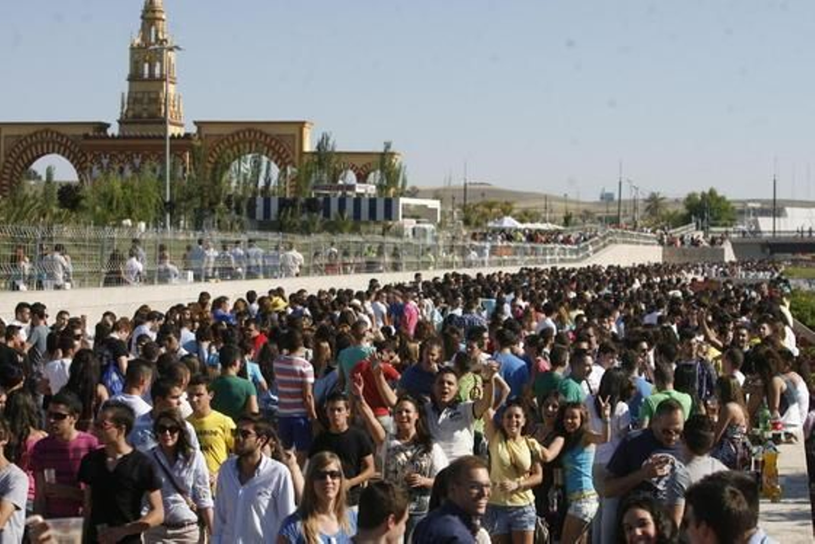 Las inmediaciones del Guadalquivir empezaron a llenarse desde la hora de comer y, los más tempraneros, fueron los afortunados que consiguieron un hueco bajo el puente de El Arenal, los únicos pocos metros cuadrados con sombra. Los que llegaron después -miles- tuvieron que conformarse con algún hueco a pleno sol, pero parecía que poco les importaba. Tampoco era el momento de hablar de exámenes ni apuntes, aunque las pruebas finales están a la vuelta de la esquina. La mayoría tampoco sabía el plante que los rectores habían hecho al ministro de Educación, Ignacio Wert, aunque sí conocen su nombre y sus intenciones de que el año que viene tengan que pagar más por estudiar.