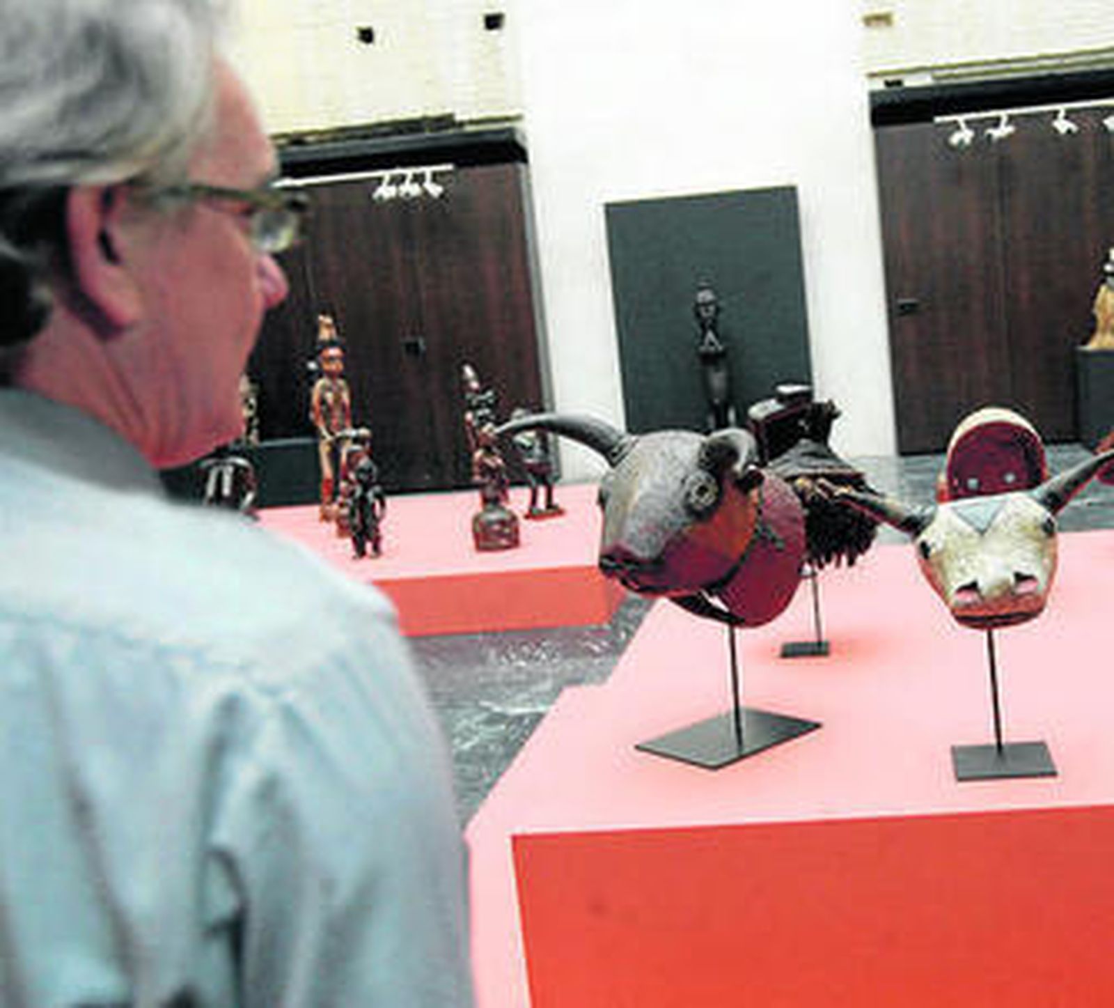 Otro de los espacios expositivos abiertos en la jornada de ayer fue la Sala Orive, que acoge África negra, máscaras y esculturas tradicionales, compuesta por 39 piezas -máscaras, esculturas y fetiches- propiedad del coleccionista Manuel Méndez, que desde hace 28 años recorre el continente africano atraído por su arte.