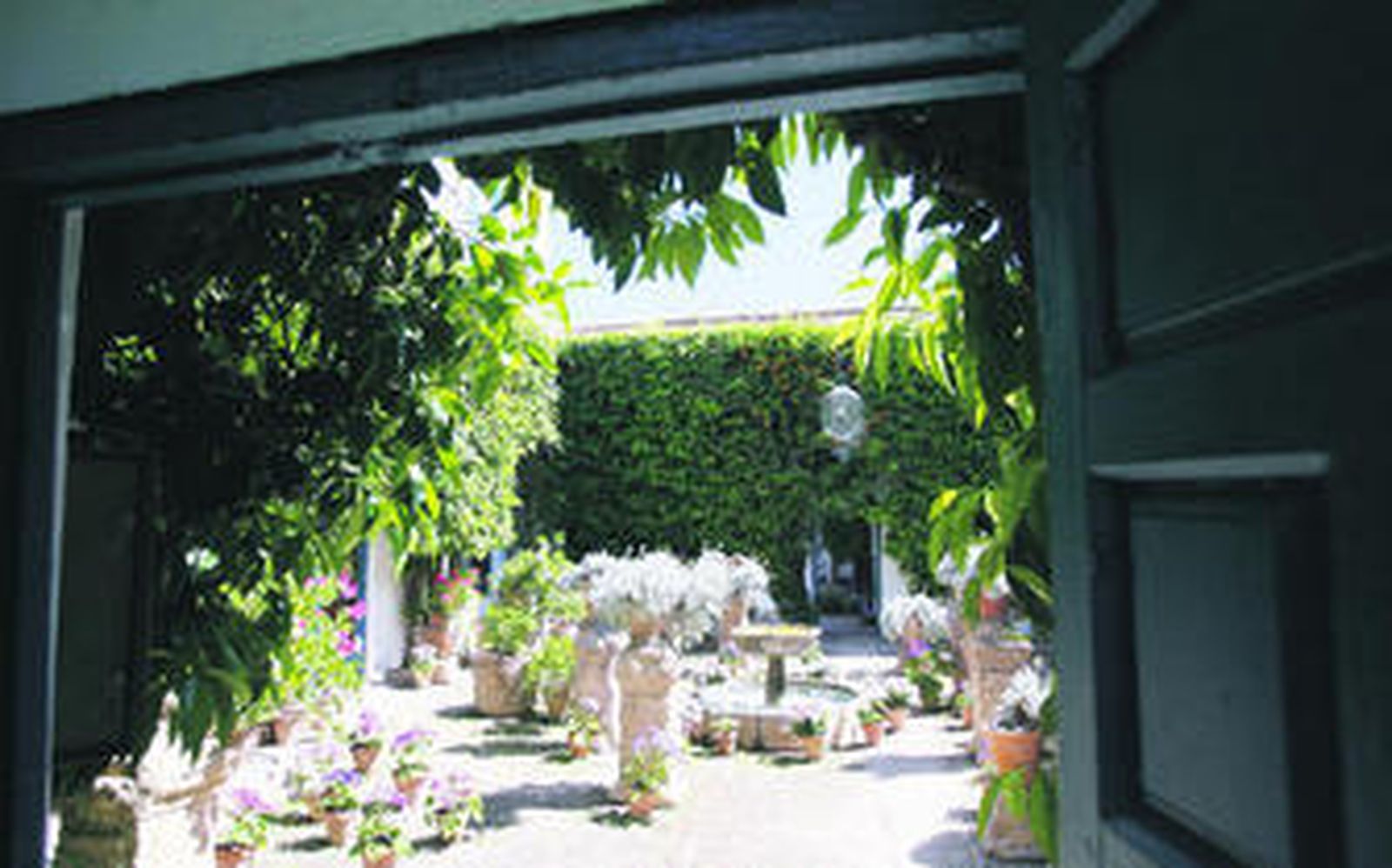 Próxima parada: el patio de los Naranjos, por el que se accedía al recinto originalmente. En la alberca vuelven a crecer los nenúfares, y en los arriates se despliega de nuevo el heliotropo, conocido por sus flores de intenso perfume a vainilla. Se cuenta que el último marqués acudía cada mañana a este patio para coger un ramito de esta flor y prenderlo en el ojal de su chaqueta. El siguiente es el patio de las Rejas, del siglo XVII, construido para exteriorizar el prestigio social de la familia. El orgullo de la saga durante los siglos: el II marqués de Viana lo eligió para su primera colección de postales y, en 1960, Sofía Amelia de Lancaster y Bleck, III marquesa, ordenó construir unas gradas para lucir sus macetas de cineraria híbrida al paso de la Virgen de las Angustias. El último de los patios, el de la Madama, del siglo XVIII, también es un capricho de nobles: la mejor visión de la fuente de la náyade se obtiene desde el dormitorio en el que el útlimo marqués, almirante de la Armada, habilitó un dormitorio para huéspedes.