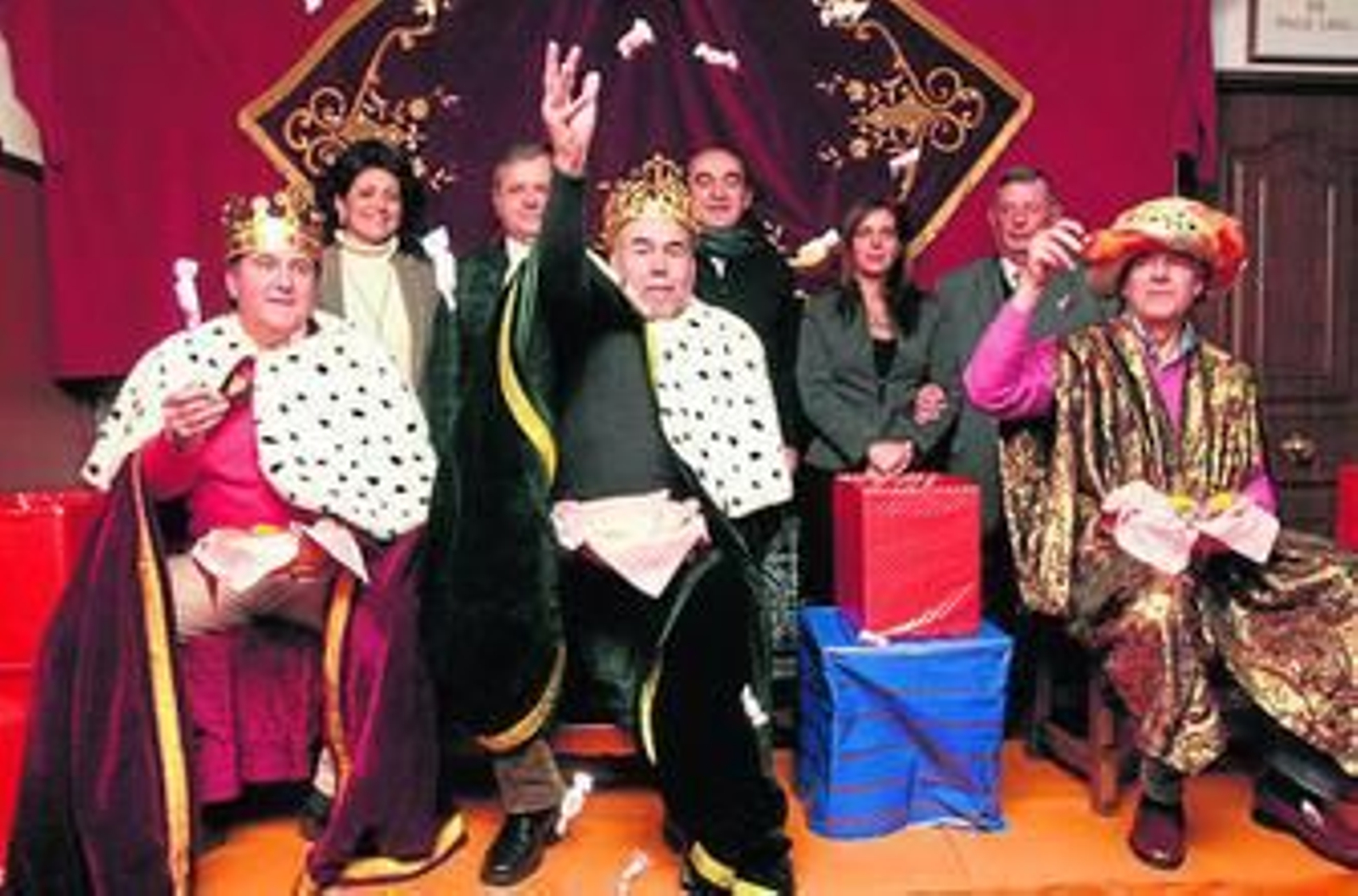 A la presentación acudieron los protagonistas de la cabalgata, el director y componente del grupo musical Oro y Plata, Francisco José Moreno, que encarnará a Melchor; el socio de la Peña Miguel López, que representará a Gaspar; y el jefe de ventas en Córdoba de Heineken España, Francisco Medina, que dará vida a Baltasar.