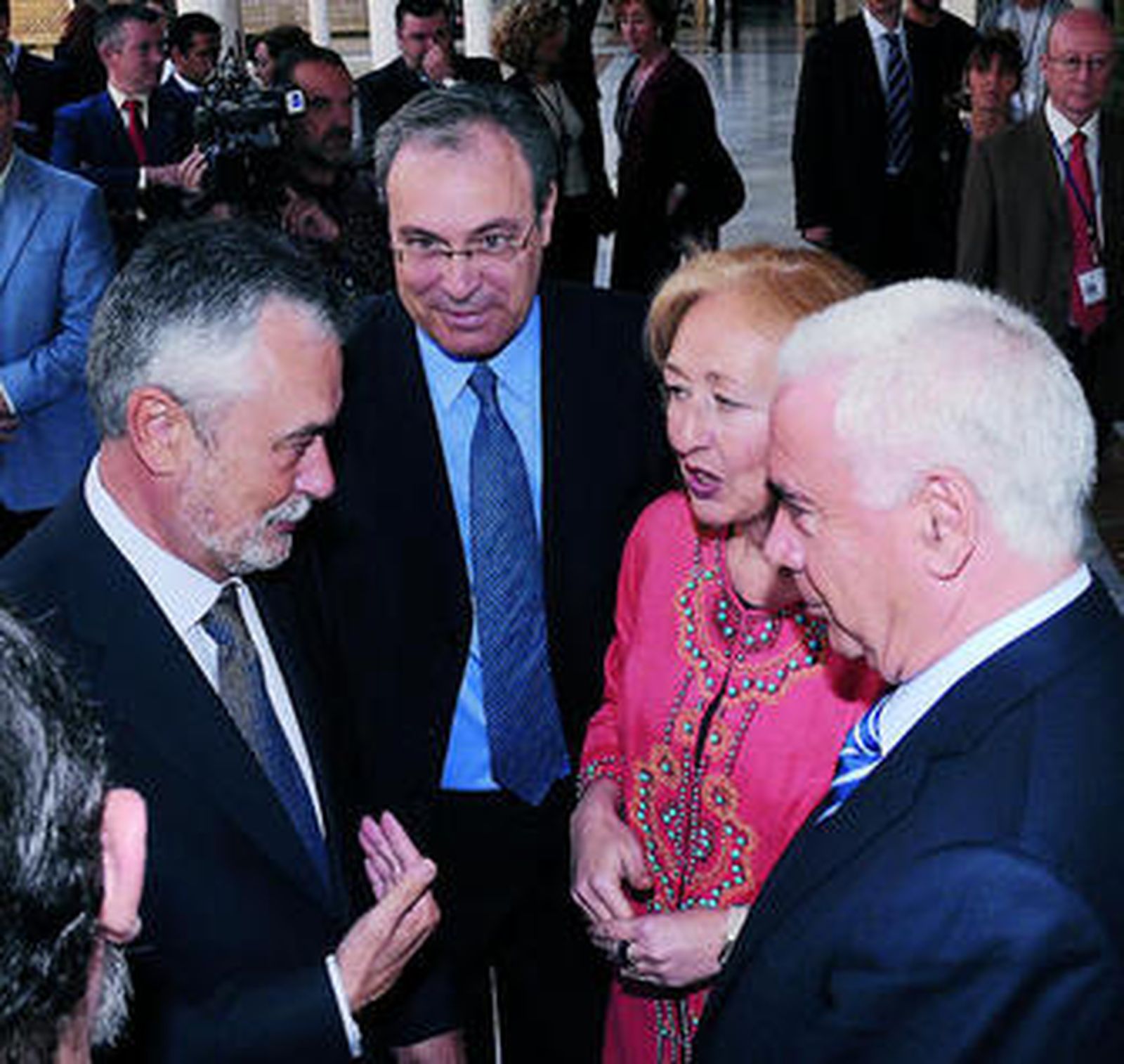 Muchos cordobeses se vieron entre el público, acalorado, del hospital de las Cinco Llagas. Todos del PSOE: Juan Pablo Durán, Francisco Pulido, Isabel Ambrosio o Rafael Velasco. Del PP, no se vio a nadie siguiendo las directrices de Javier Arenas. IU tuvo una presencia también menguada. Su único representante de cierto fuste fue Juan Manuel Sánchez Gordillo, que hace muy pocos días auguraba la salida de Aguilar hacia los predios del puño y la rosa. Fue escueto. "Es mejor estar en el PSOE pensando como el PSOE, que estar en IU pensando como el PSOE".