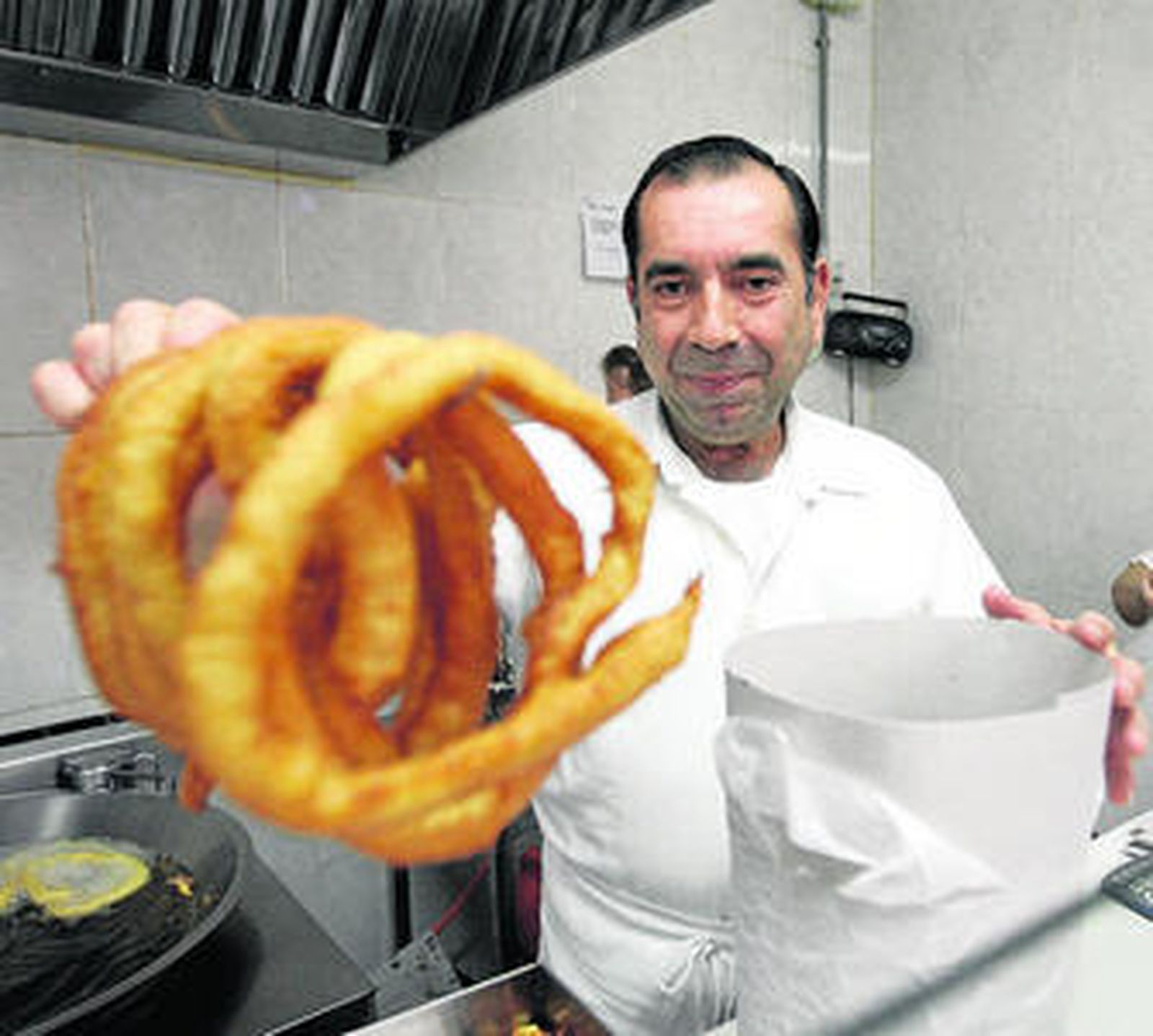 Durante todo este tiempo, son incontables los kilos que Chari ha mezclado a mano, "como se hacía antiguamente", al igual que son incontables las ruedas que sus hermanos han sacado de la jeringa y han frito en el perol hasta adquirir el dorado adecuado. "Un domingo cualquiera se pueden servir entre 25 y 30 kilos", calcula, mientras señala la olla metálica donde guarda el secreto de su éxito. Bajo el dedo alzado de una estatua de San Pancracio, Chari atiende a una clientela que no se amilana: la mayoría tiene que esperar a la intemperie debido a las reducidas dimensiones del local. Pero no importa el frío. "Tenemos un proyecto en mente, pero todavía no lo podemos desvelar", dice esta maestra de la masa frita, que sugiere la apertura de una cafetería para consuelo de sus seguidores.