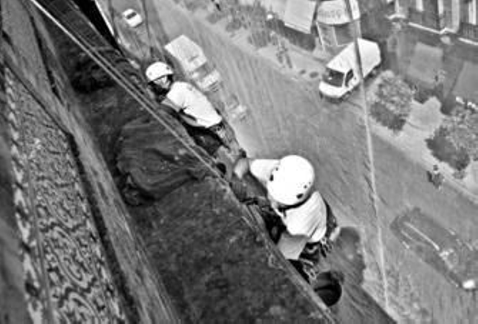 Este alpinista es propietario de una empresa de trabajos verticales llamada Survertical, que se dedica a rehabilitar edificios, mantenimientos industriales o a realizar otro tipo de labores en lugares de difícil acceso. En este trabajo es necesaria la luz del día, por lo que "hay que aprovechar las horas de sol", que son bastantes en esta época del año. La empresa surgió en los años 90 debido a su afición a la escalada, creando así una nueva forma de trabajar en la que los empleados comenzaron a ir colgados con cuerdas por los edificios. "En Córdoba, sobre todo nos llaman para fachadas", pero este método también es requerido por grandes compañías o para obras civiles con una característica en común: llegar a un lugar complicado. "Hay que saber de todo un poco y hay que aprender según la necesidad", explica.