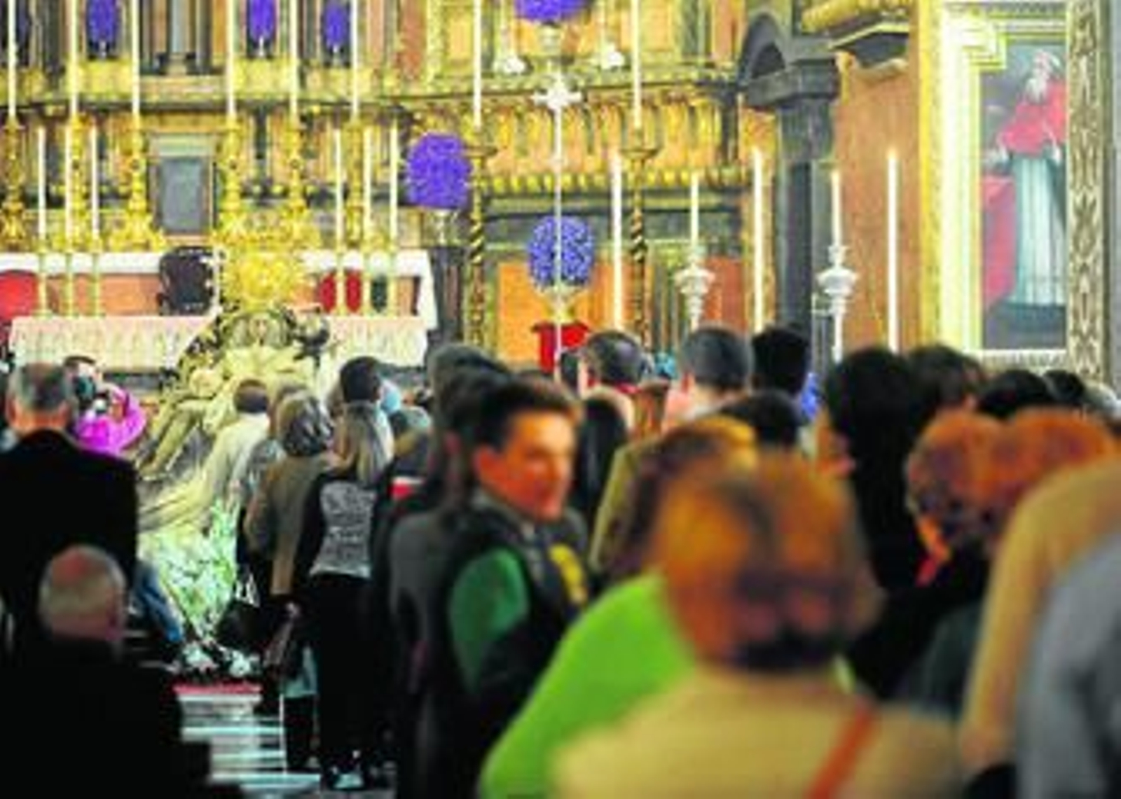 Cientos de fieles se acercaron ayer a la iglesia de San Agustín para ver a la imagen de Las Angustias en el interior de su templo después de vivir el sábado una jornada histórica
