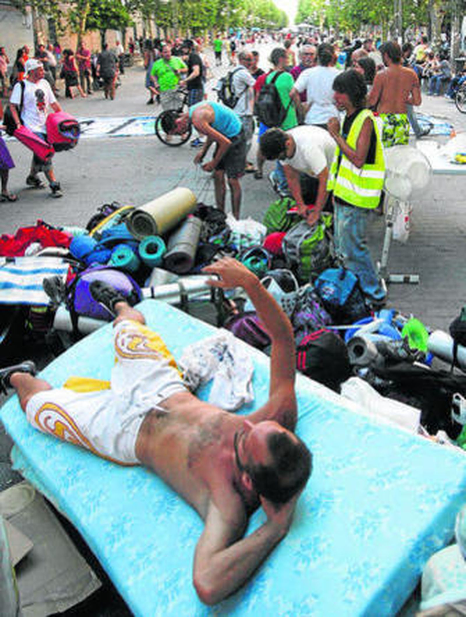 El sol estaba ayer en lo alto cuando un grupo formado por unos 40 indignados llegó a la acampada Locsa, punto de encuentro con sus homónimos cordobeses. Un lugar en parte simbólico con respecto a los ideales que este movimiento social defiende. Después de tomar allí unos refrescos, todos los seguidores del 15-M iniciaron una marcha por la capital que culminó en el instituto Averroes, donde descansaron hasta la llegada de la tarde, en la que tuvo lugar la celebración de una asamblea en los alrededores de la céntrica iglesia de San Nicolás. Por cierto que este mismo centro sirvió también para que las decenas de personas comprometidas con esta iniciativa pasaran la noche.