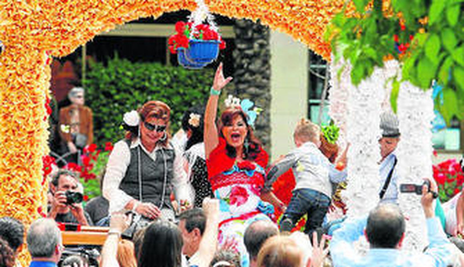 Cordobeses y turistas esperaban animados, a pesar de los cerca 30 grados de temperatura que se registraban a las 12:00, la cabalgata de carrozas, organizada por la Federación de Peñas cordobesas. "Este evento significa la inauguración de nuestro mes de mayo y por ello es una alegría ver a todas estas personas disfrutando de un momento tan especial como éste", señaló Ferrero mientras preparaba su munición desde el palco de autoridades. Y a tan sólo unos metros de él se encontraba la ministra de Agricultura y Medio Ambiente, Rosa Aguilar, que como "buena cordobesa" -tal y como ella misma se define- no faltó un año más a la cita. "Sin lugar a dudas, yo siempre estoy con mi ciudad y con el mayo cordobés, que no tiene par en el mundo entero. Además la Batalla de las Flores es una cita que cada año nos dice que estamos de Cruces, que vienen las romerías, se aproximan los Patios y las Rejas y que todo culminará con nuestra Feria", señaló Aguilar sin quitar ojo a las carrozas que poco a poco se acercaban hasta el punto en el que se encontraba todo el cortejo político. Fueron 17 las carrozas que ayer desfilaron por la avenida de la Victoria y "muchos miles" de claveles los que se lanzaron, tantos como 120.000.