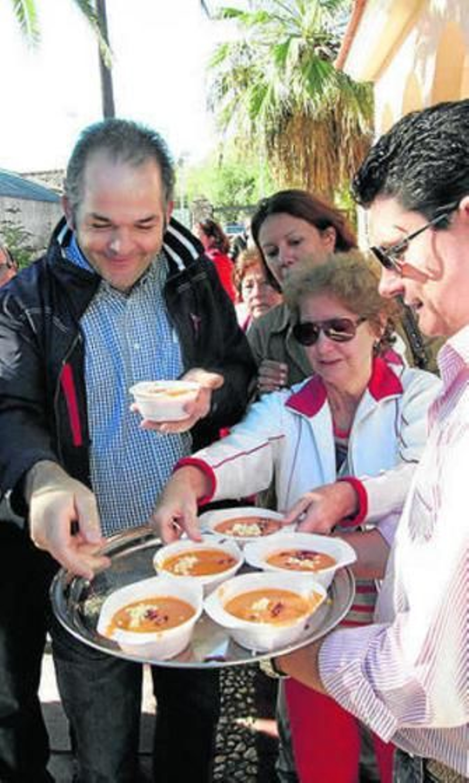 La elaboración del plato también fue seguida por la atenta mirada de decenas de personas que habían decidido pasar la mañana del domingo en el Jardín Botánico. Uno de los que no perdieron detalle fue Francisco Muñoz, quien había acudido hasta las instalaciones municipales para comprar unas plantas en el Mercadillo de las Flores y "por sorpresa" se encontró con la elaboración del salmorejo. "Estoy deseando probarlo porque soy un amante de este plato y así dar mi opinión de cómo ha quedado de sabor", dijo sonriendo. A tan sólo unos metros de Francisco se encontraba María Romero, quien, junto a su marido, esperaba pacientemente a que terminaran de preparar los 300 kilos de salmorejo. "Yo de aquí ya no me voy sin saborear una ración porque la verdad que tiene una pinta exquisita", aseguró. Y, como no, la espera tuvo su recompensa, ya que todos ellos recibieron su cuenco con el salmorejo que había logrado ser récord Guiness. Todo ello aderezado como no podía ser de otra forma por jamón de los Pedroches y huevo cocido bien picado.