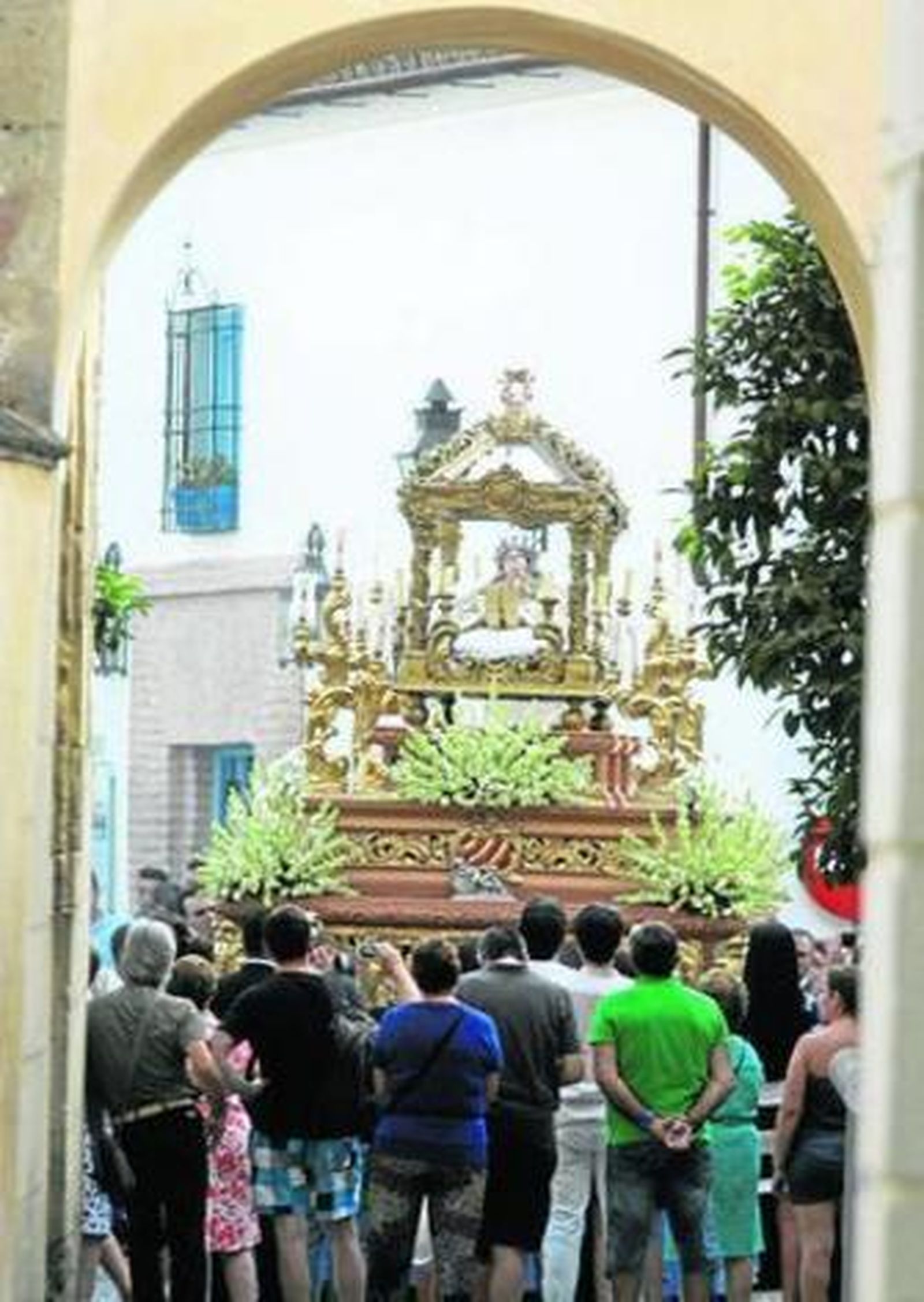 El recorrido comenzó con la marcha real, entonada por la banda de Cañete de las Torres Tubamirum, que enalteció la salida de la Virgen de Acá. Los sentimientos y las emociones de los vecinos aparecieron en sus rostros alegres. Las casas blancas, junto a sus balcones con flores, del coqueto barrio del Alcázar Viejo resplandecieron aun más con la procesión de la hermandad del Tránsito.