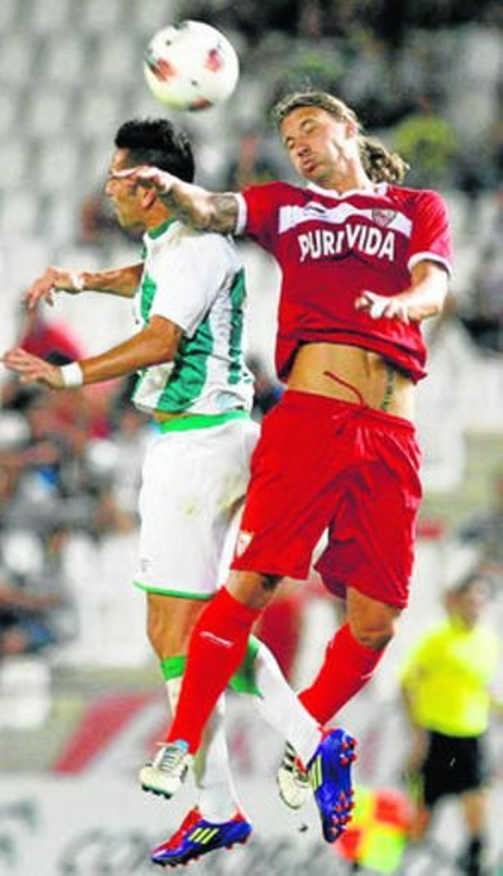 Pero apenas dio tiempo. Bernardo Cruz derribó a Negredo cuando éste encaraba ya la portería. Los sevillistas pidieron penalti; el árbitro la sacó a la frontal. Trochowski se la pidió y volvió a fusilar al meta blanquiverde, que ni vio la pelota, que le pasó por encima de las manos. El Sevilla volvía a golpear, como cada vez que pisaba el área cordobesista. Bastó con ver el gesto de Negredo, que intentó una vaselina con el pecho que tocó el larguero antes de irse fuera. Crack de Vallecas.