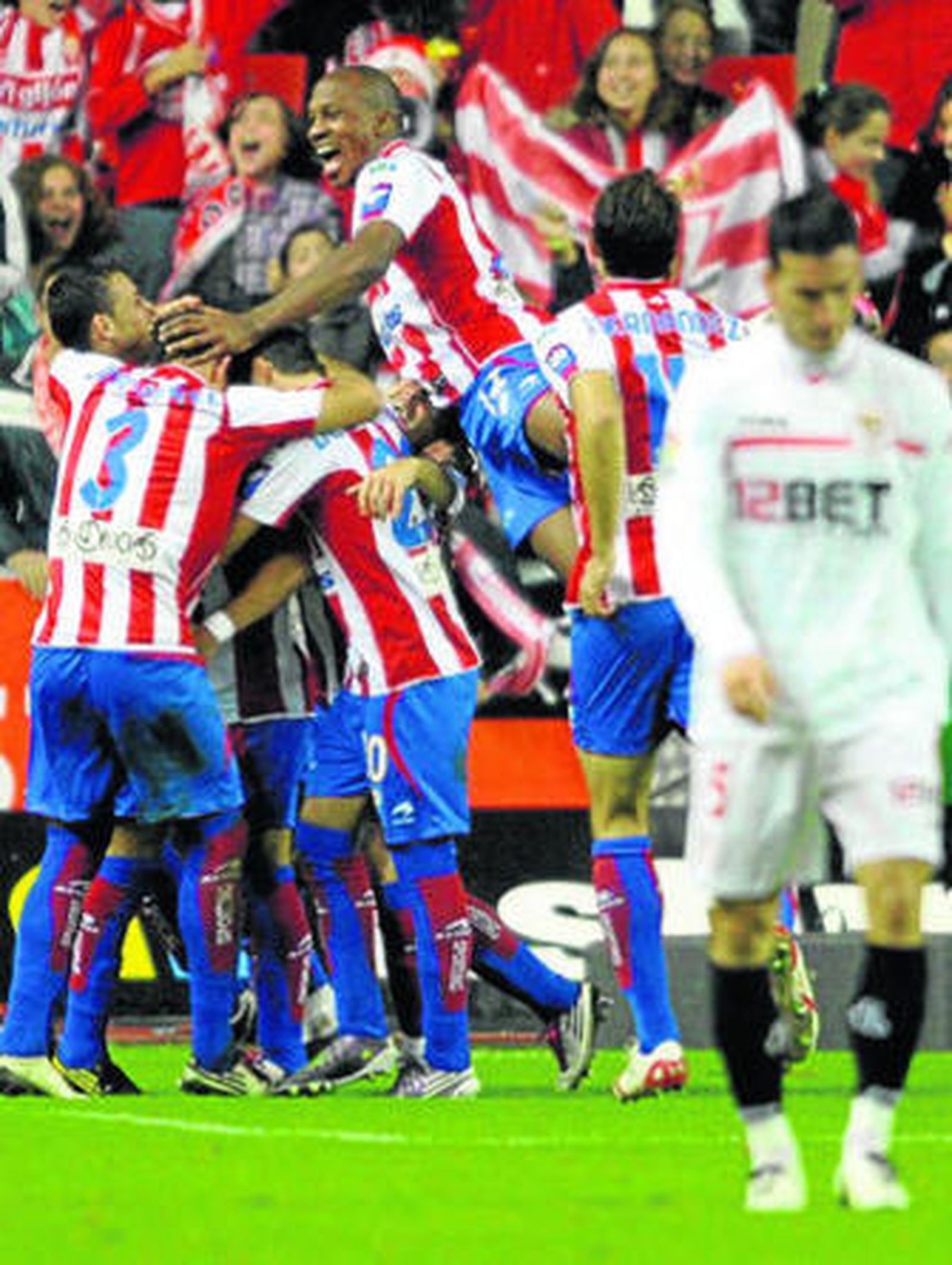 Un gol recibido con alborozo por la hinchada local y que dejó tocado a los de Gregorio Manzano durante bastantes minutos en los que el Sporting se volcó al ataque. La primera parte finalizó con dominio sevillano y el Sporting tratando de sorprender en un contraataque.