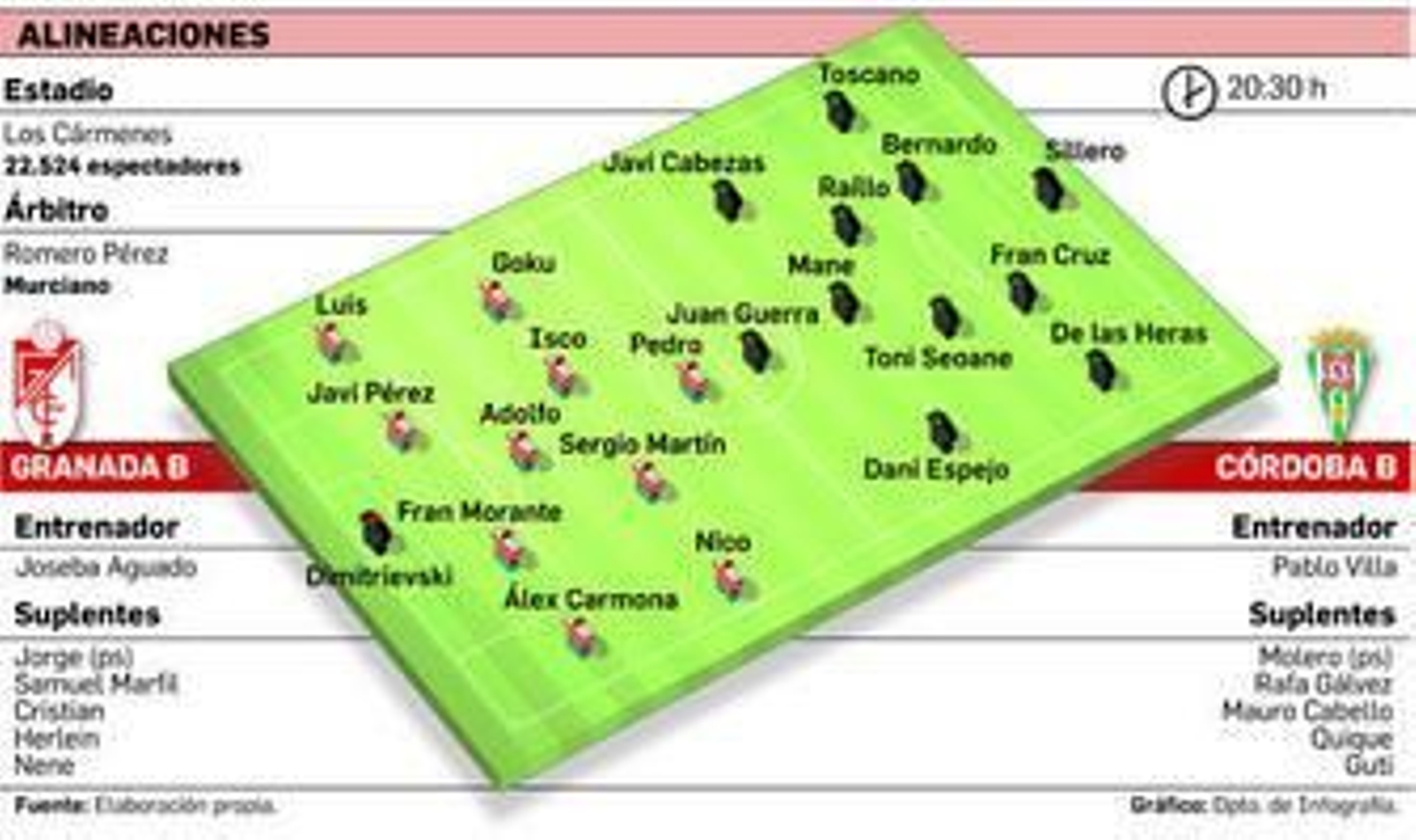 Hoy se inicia la primera batalla en Los Cármenes, un campo que estaba ocupado por un torneo de fútbol-7 el fin de semana. Hoy le toca el turno a dos filiales con ganas de crecer. Quizás el filial cordobés esté más habituado a grandes escenarios. Todo puede pasar. La eliminatoria está muy igualada y sólo puede quedar uno. El Córdoba B quiere más. A por ellos.