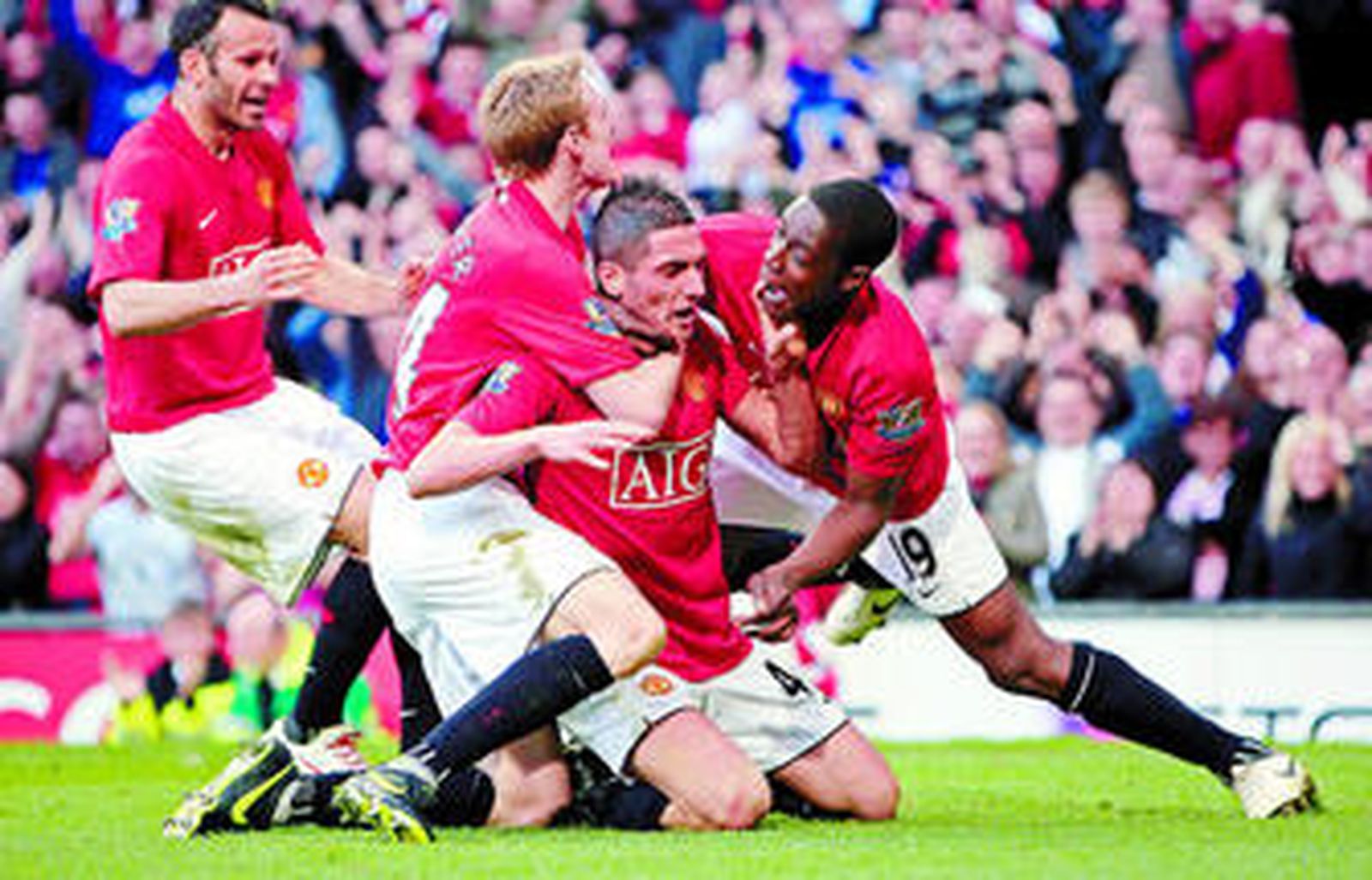 El Manchester United, que enderezó su rumbo en la Liga tras las dos recientes derrotas seguidas -Fulham y Liverpool- -que encajó, tiene aún un partido menos que el resto de aspirantes, y supera en un punto al Liverpool y en tres al Chelsea. Además, el Everton goleó al Wigan (4-0) con un doblete del brasileño Jo Alves.