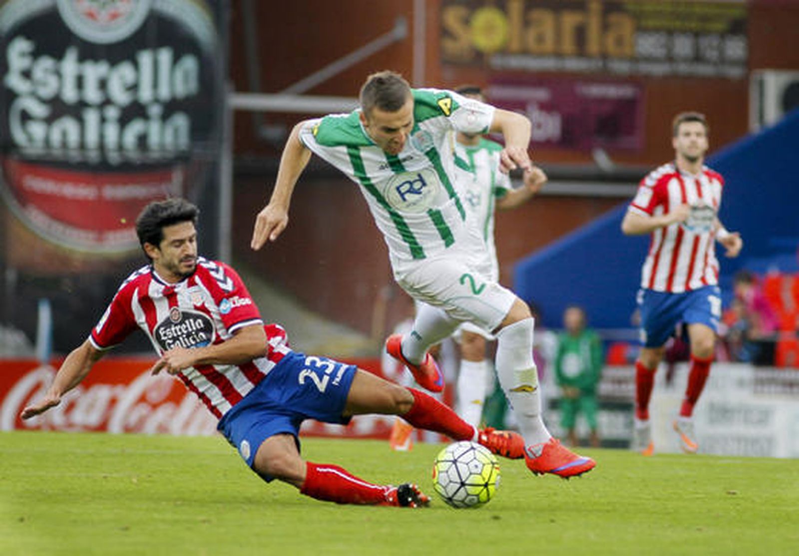 La visita a Lugo era idónea para comprobar de qué pasta está hecho este Córdoba. La ausencia de tres titulares habituales, un campo maldito, un rival que quiere el balón y manda en su casa, esas rachas que amenazan con romperse... Pues tras la batalla, el cuadro de Oltra salió reforzado a más no poder. Porque los blanquiverdes dieron el ansiado paso al frente con la posesión, sobre todo en la segunda mitad, y firmaron un partido defensivamente en la línea de los últimos. Eso sí, con dos lunares importantes en la zona de Stankevicius en el acoso final gallego y la parte cubierta por un Rafa Gálvez al que le vino demasiado grande actuar de cierre. En ambos casos, un excelso Deivid, bien secundado en varias ocasiones por Luso, evitó sustos mayores y dio la solvencia necesaria para que el equipo fuera creciendo y creyendo poco a poco en sus posibilidades. Algo a lo que ayudó también el momento de los goles: el primero de Xisco, de una factura perfecta, para cerrar la crisis que había generado el 1-0; y el definitivo 1-2 de Pineda, también de inmaculada ejecución, cuando más apretaban los locales. Efectividad y eficiencia prácticamente plenas y mono de trabajo para defender la valiosa renta, con la confianza de quien ve que todo lo que toca le sale a pedir de boca.