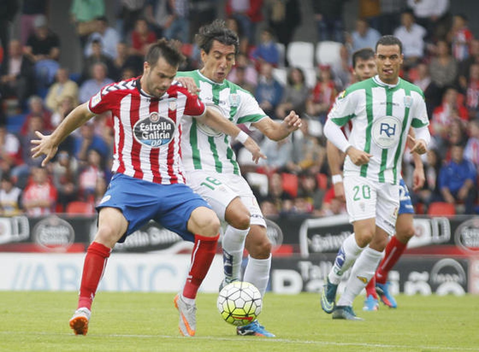 El gol dejó tocado al Córdoba, que pasó a no estar cómodo con la pelota. El equipo perdió por un momento el control y el sitio en el partido y Sergio Marcos casi lo aprovecha para hacer el segundo. Por suerte, fue un lapsus momentáneo, entre otras cosas porque tras un primer susto en una contra eternamente conducida por Raúl de Tomás -¡toca antes!-, la clase de Markovic y la capacidad de desequilibrio de Xisco bastaron para firmar las tablas. El Anxo Carro sufría así el primer tanto visitante en todo el curso, al tiempo que dejaba de disfrutar con los suyos, que ya no encontraban tanto espacios por los que hacer daño. Sólo un par de tiros de media distancia de David López y Campillo a los que respondió Falcón fue el bagaje antes del intermedio.