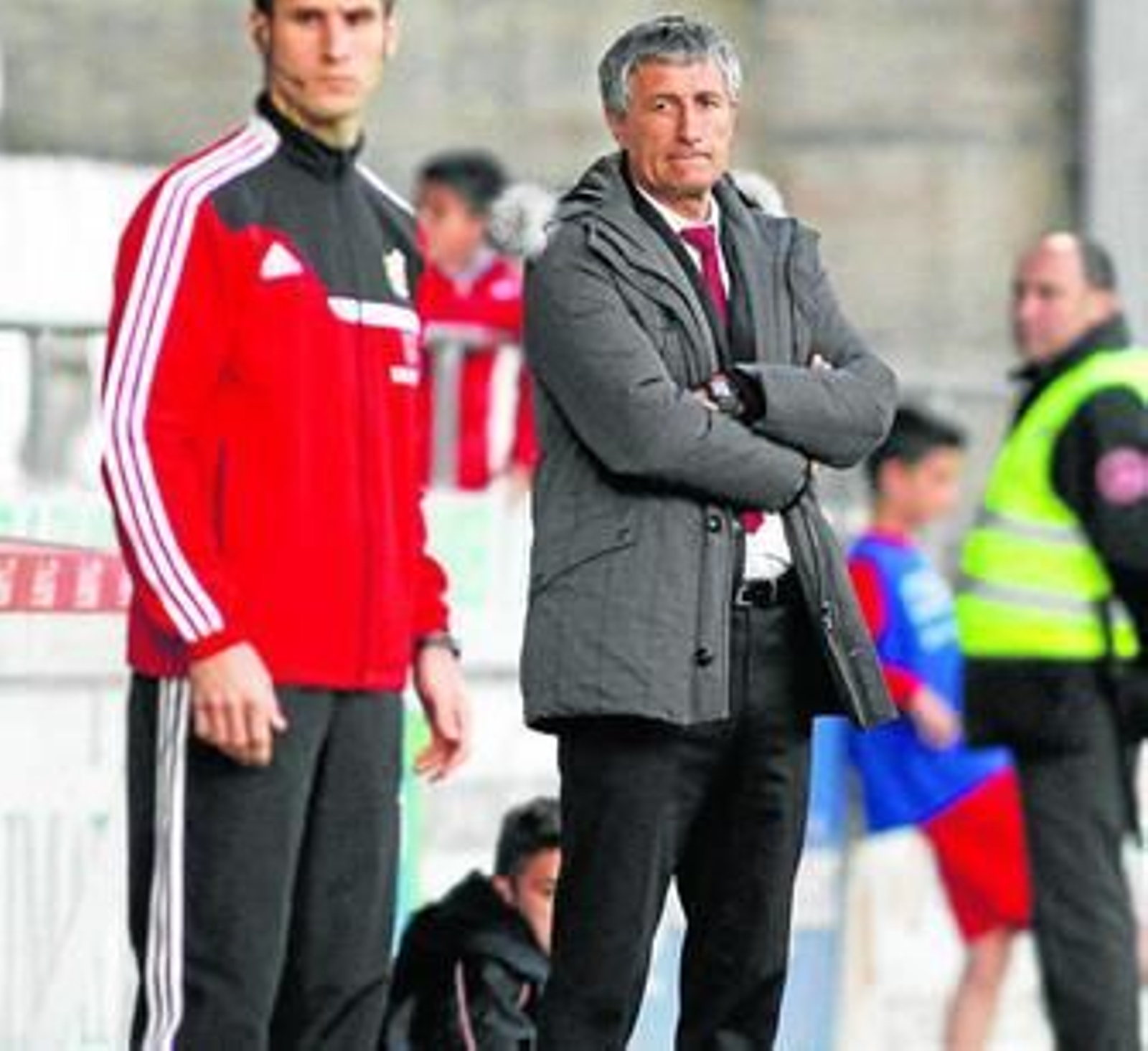 Quique Setién sigue las evoluciones desde el banquillo de un encuentro del Lugo.