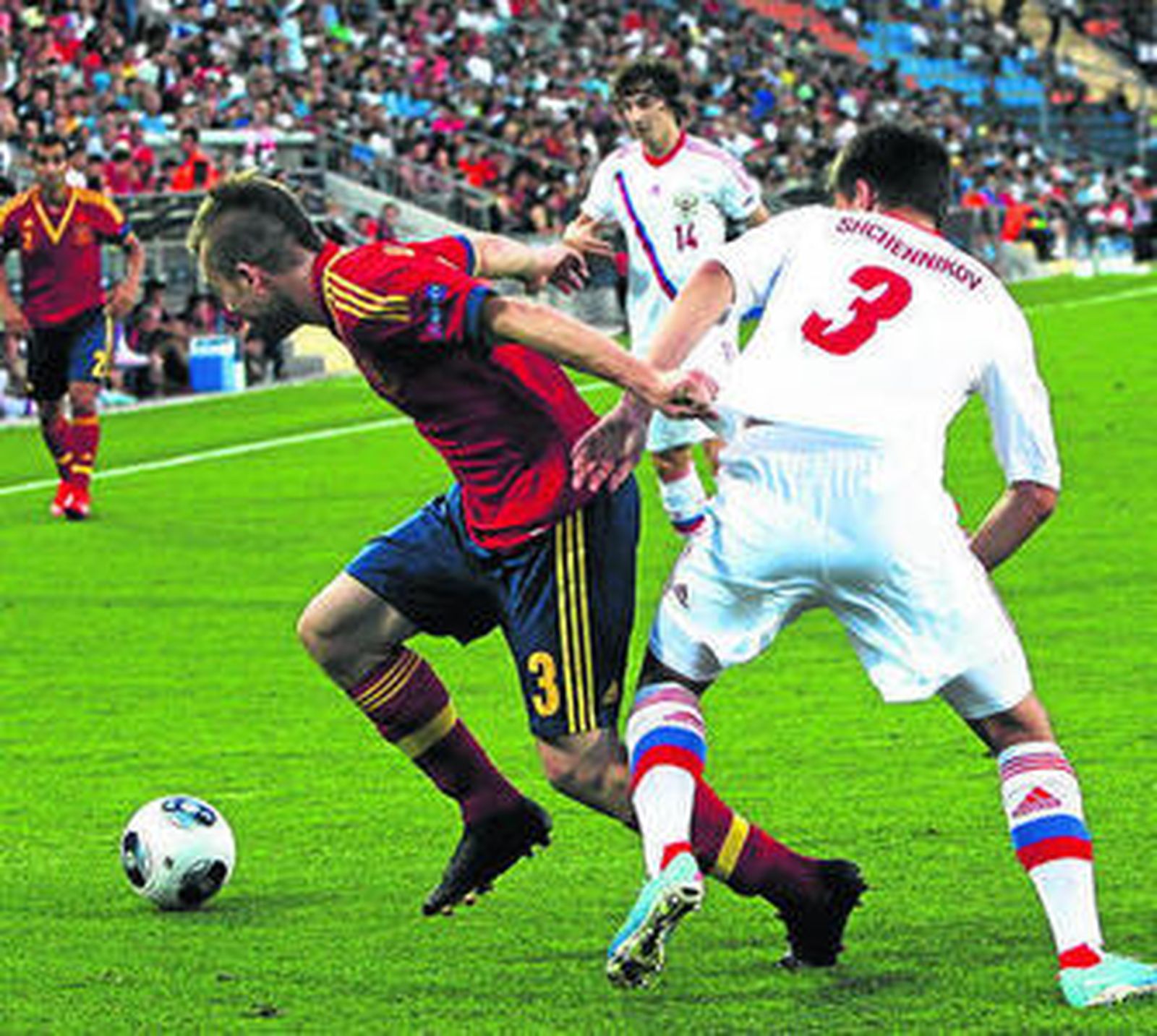 La omnipresencia de Isco y Thiago no bastó ante la férrea resistencia rusa y el mayor peligro llegó a balón parado. Así, una falta magistralmente ejecutada por Thiago en el minuto 82 fue peinada con un perfecto gesto a gol por Morata.