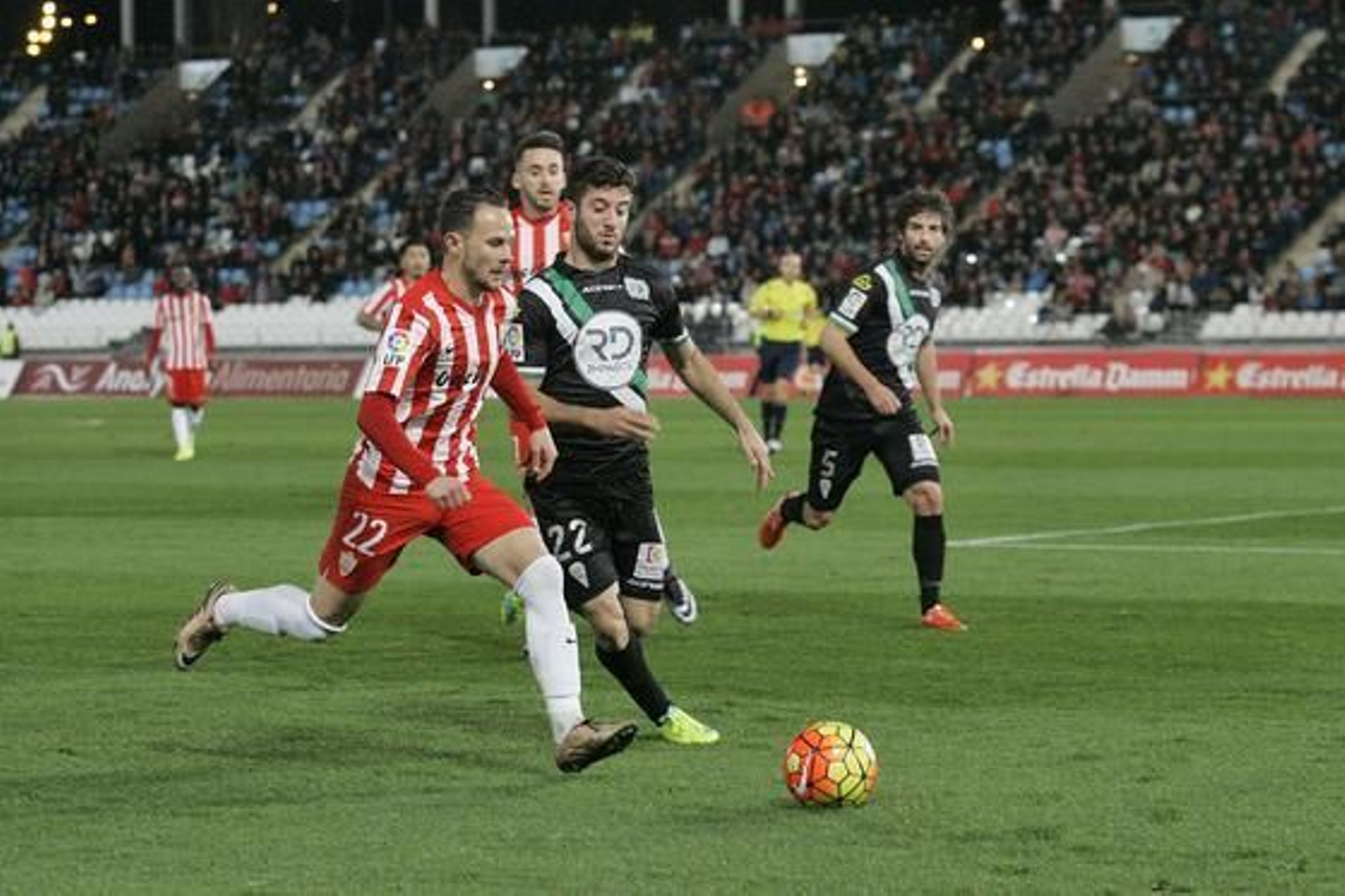 Pero la cosa estaba para asestar un golpe tirando de calidad. Nada más arrancar el segundo acto, Xisco habilitó a Víctor, pero Casto salió rápido a sus pies. Un primer aviso que tuvo continuidad en el gol, en el que el asistente se comió un fuera de juego de Fidel en el origen; luego, Florin hizo su trabajo en el área tras el servicio de Markovic y rompió el equilibrio. Lo más difícil estaba ya hecho. Quedaba ver ahora cómo se comportaría el Almería, presionado por la situación, la clasificación y su propio fútbol. Con todo, se encontró con un regalo inesperado. Esa compensación propia de los malos árbitros. Stankevicius dejó al Córdoba con diez por dos acciones que no merecían siquiera la amonestación verbal y dibujó un partido nuevo que sirvió para demostrar la madurez del equipo. Dalmau ocupó su sitio y Oltra dibujó un 4-4-1; Gorosito movió sus fichas de arriba, refrescando la última línea, pero sin arriesgar lo más mínimo.