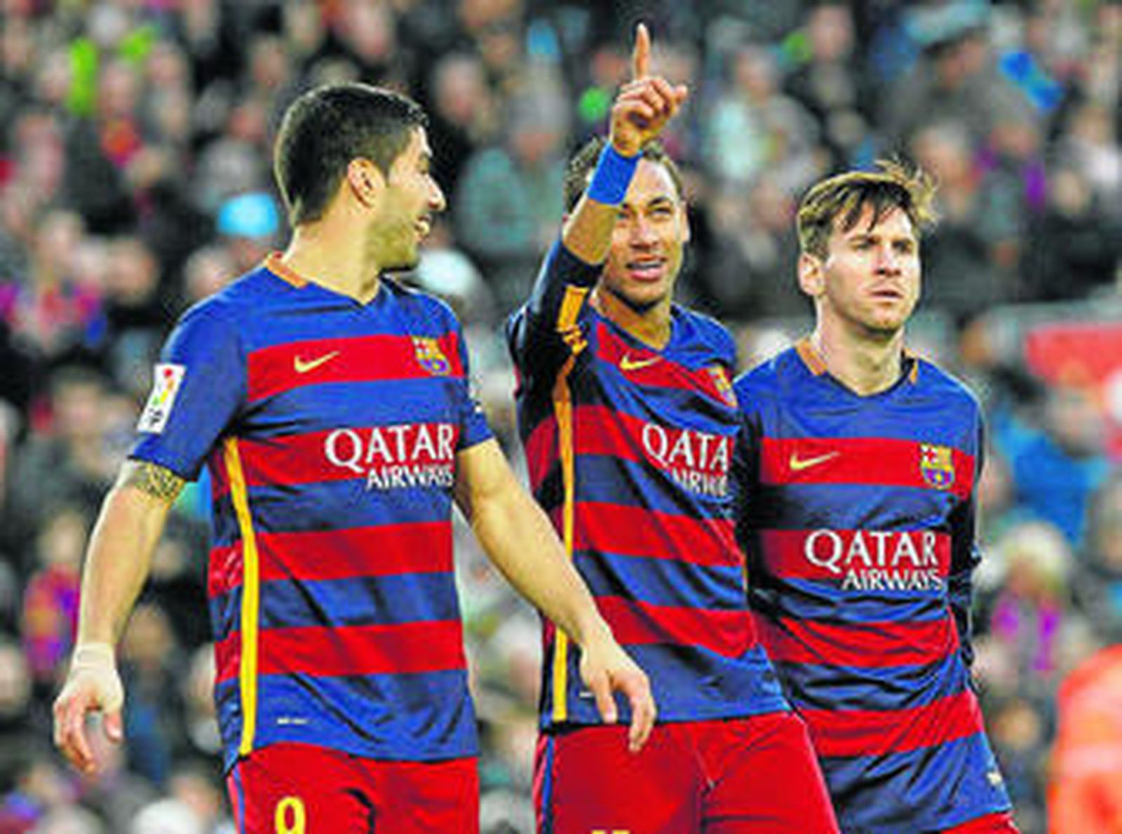 "Es difícil que haya un tridente mejor que el que formamos con Neymar y Suárez", afirmó Messi, autor de 47 de los 134 tantos del trío. Su impresionante marca incluye dos meses de pausa en los que una lesión mantuvo a cero el contador personal del 10 argentino. En ausencia de Messi, que en 2015 recuperó el tono que le había faltado la campaña anterior y volvió a ser el mago que encandila y decide con su fútbol de genio, Neymar y Suárez tomaron su relevo.