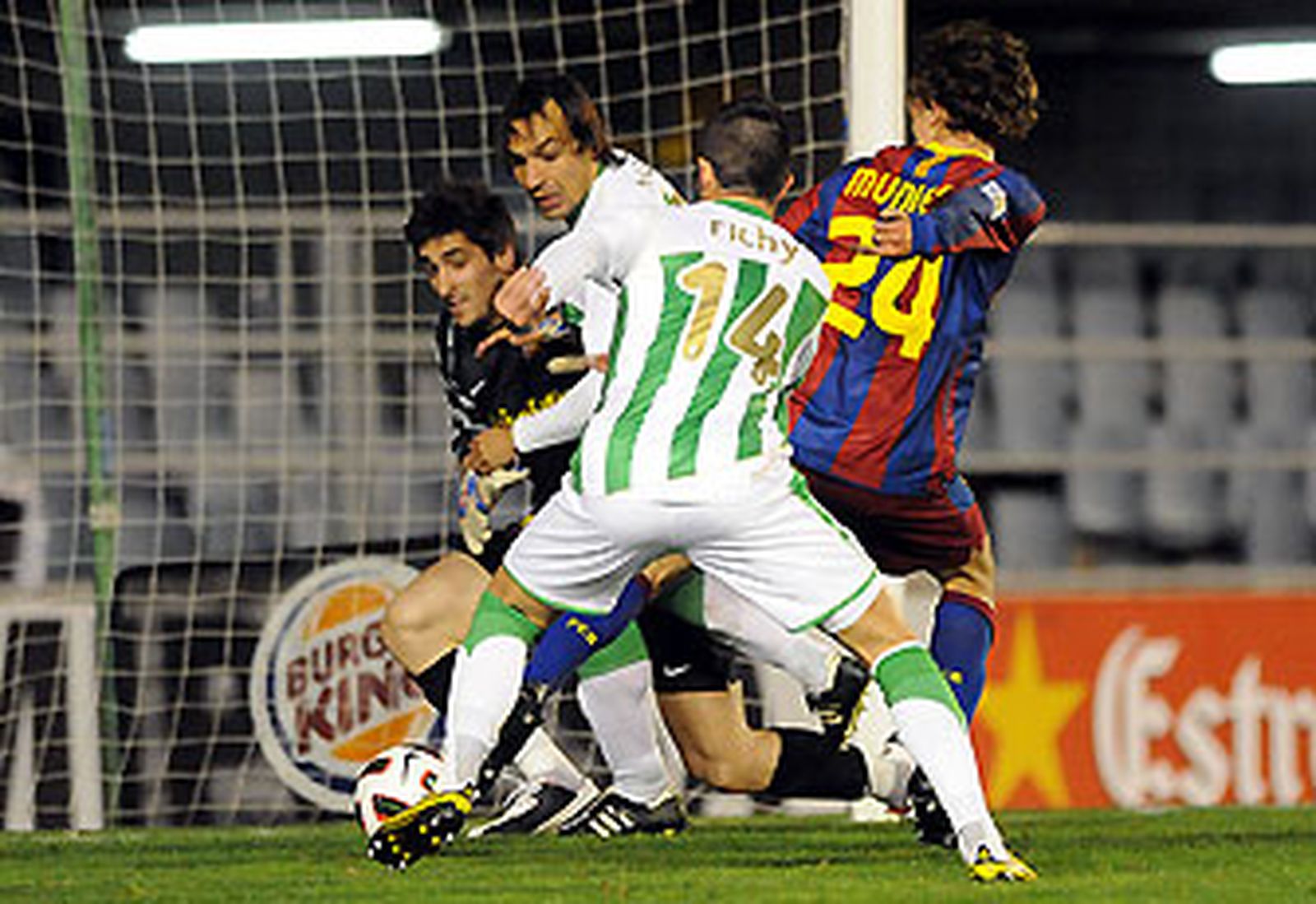 El Córdoba dio señales de vida con sendas contras malgastadas por Arteaga y Juanmi Callejón. No obstante, fue mucho más claro un centro al área de Abraham, el lateral izquierdo local. A los blanquiverdes no les quedaba otra que exprimir cualquier robo, estar certeros en las transiciones. Porque el gol en contra se veía venir. Sin rastro de Usero ni Jorge Luque, la pelota era absolutamente culé. De un lado a otro, con mil toques en corto. Con Fontás dando un curso acelerado de lo que debe hacer un pivote defensivo para auxiliar a sus diez compañeros.