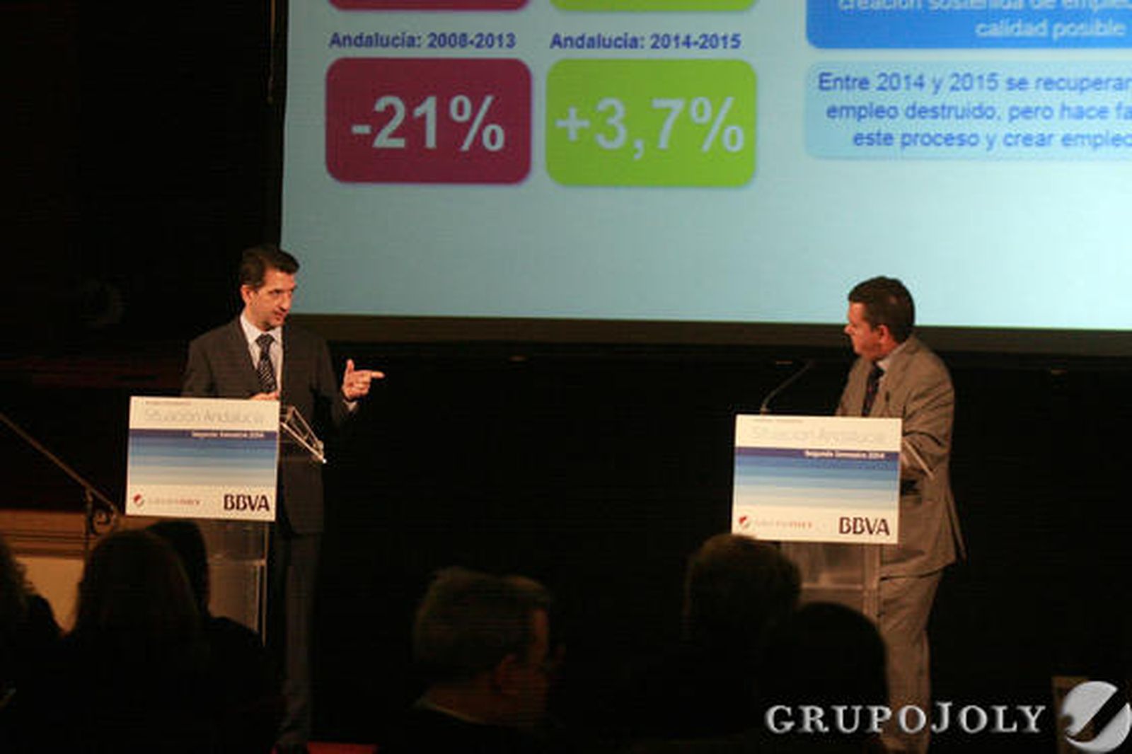 Son varios los factores que han propiciado el despegue de la economía andaluza y que ha marcado 2014 como un punto de inflexión. La comunidad autónoma ha sabido mantenerse junto con la evolución del resto de España y en la mejoría ha sido clave el comportamiento de las exportaciones. Igualmente, la política fiscal ha dejado de ser excesivamente "restrictiva" para pasar a ser "neutral" o incluso "más laxa" a partir del año que viene, lo que permite un mayor margen de maniobra. La política monetaria por parte del Banco Central Europeo (BCE), también más permisiva, es otro de los factores que ha contribuido a la vuelta al crecimiento, así como la reestructuración del sector bancario, que ha permitido "la mejora del flujo de nuevas operaciones de crédito". El economista de BBVA hizo hincapié en este hecho ya que está propiciando que se recupere también la demanda interna, el consumo. Esto se puede considerar como una traslación de las grandes cifras económicas a la economía real de la mayoría de las familias pues, según apuntó, el consumo se ha incrementado un 1% de media, lo que significa que la gente gasta más, aunque esta práctica no sea todavía muy generalizada.