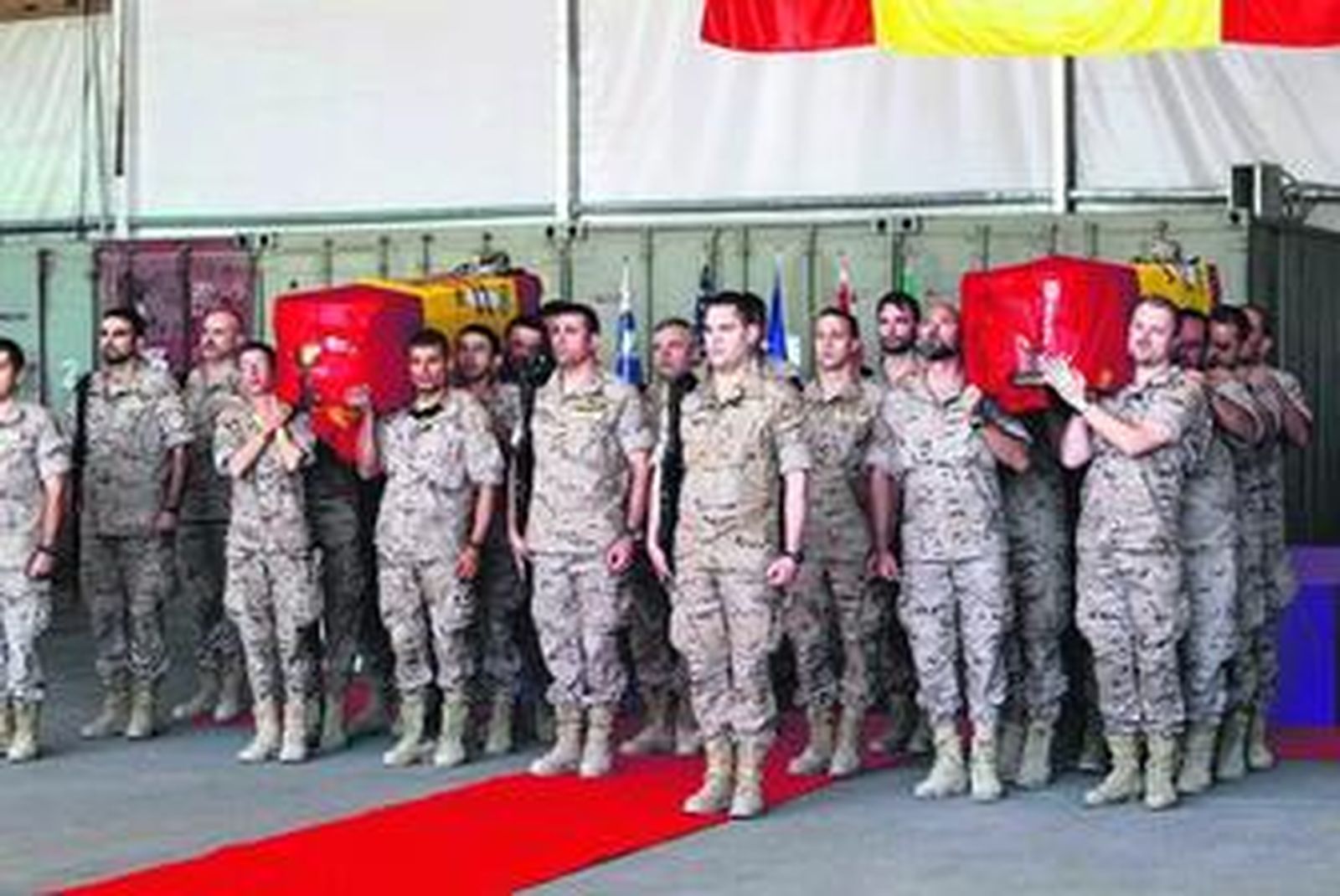 lEspaña ha perdido otros dos soldados en Afganistán. Son el sargento Manuel Argudin Perrino y la soldado Niyireth Pineda Marín, que resultaron víctimas de un atentado con una carga explosiva que, según explicaron ayer fuentes de la investigación, "tenía como mínimo 30 kilogramos" y que ha sido la mayor utilizada contra efectivos españoles desde que están presentes en el país asiático. Sus compañeros, visiblemente afectados pero intentando mantener la procesión por dentro, portaron los féretros de los dos militares fallecidos ante la presencia de la ministra de Defensa, Carme Chacón, que se desplazó rápidamente a la base de Herat una vez conocida la tragedia. Los cuerpos llegaron ayer por la tarde a la base aérea de Gando, en la isla de Gran Canaria, donde fueron recibidos por sus familiares y autoridades. Se les otorgará la Cruz del mérito militar con distintivo rojo.
