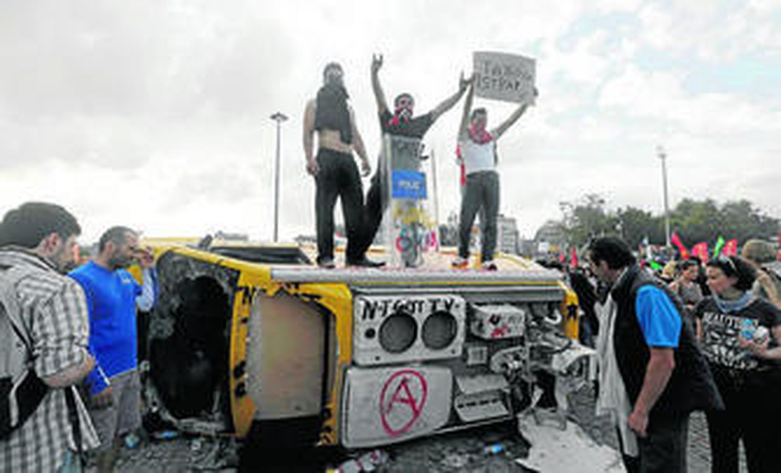 Por tercer día consecutivo la plaza de Taksim, en el centro de Estambul, se llenó de manifestantes que reclamaban la dimisión del primer ministro del país, el conservador Recep Tayyip Erdogan. La protesta transcurre por ahora de forma pacífica, después de que la policía se retirase el sábado. Miles de manifestantes marcharon por la tarde por la calle Istikal portando banderas y exigiendo la dimisión del Gobierno, informaron algunos testigos. En la plaza de Taksin se habían reunido ya a primera hora del día cientos de personas, en un ambiente tranquilo tras la represión ejercida los días previos por la Policía.