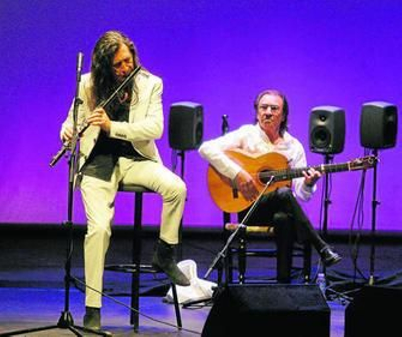 Por lo que volver a encontrarse con el tocaor el pasado jueves en el Gran Teatro, en esta edición del Festival de la Guitarra, y junto a Jorge Pardo con sus flautas y saxos, así como el resto de músicos a propósito del concierto Flamenco Universal, resultó una feliz ocasión que estamos celebrando. Consiguieron captar nuestra disposición con atinado repertorio, donde unos y otros sin alardes inútiles y sí muchas virtudes artísticas, denotaron que las piezas flamencas elegidas permitían la simbiosis y que la fama que les precede les hace justicia. Del excepcional músico con los instrumentos de viento tenemos amplias referencias desde las dos últimas décadas del siglo XX en la discografía de Paco de Lucía y sus globalizados conciertos. Su descubierta afición al flamenco le llevaría a reunirse en múltiples y acoplados recitales, así como con astros del jazz, fusionando éste con el jondo, y difundiéndolo sin complejos en el ámbito universal.