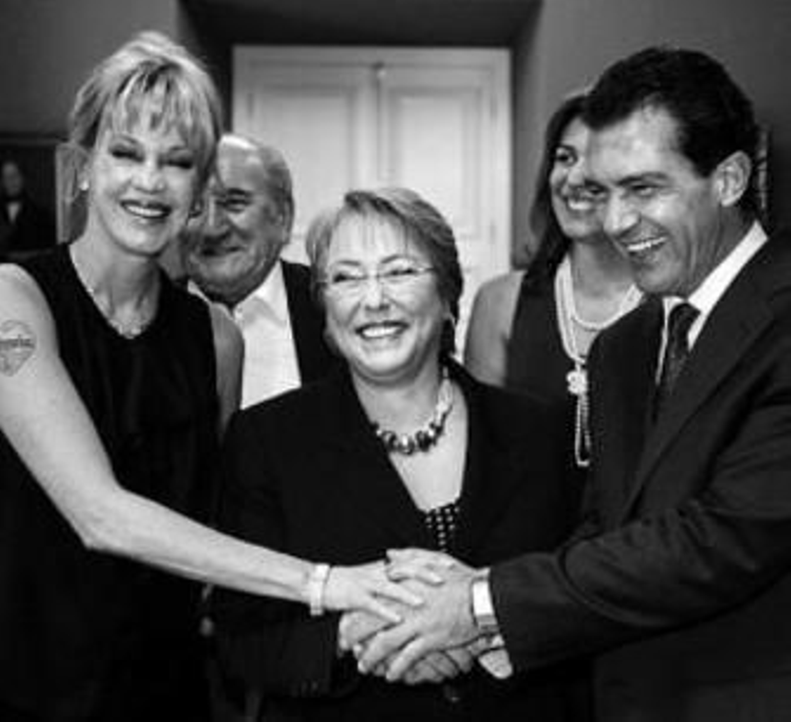 La presidenta de Chile recibió ayer en el Palacio de la Moneda al actor Antonio Banderas y a su esposa, Melanie Griffith, para compartir un almuerzo con diferentes miembros de su gobierno, actores y directores chilenos.