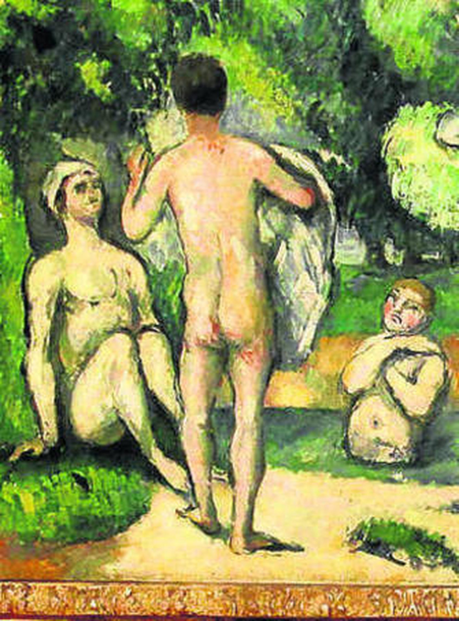 Con una estructura absolutamente temática, el recorrido mostrará a continuación una selección de pinturas de bañistas, "la única parte de su obra que no pintó del natural. Tanto los desnudos como el paisaje en el que se encuentran son inventados". La propuesta del comisario en este espacio es relacionar paisajes pintados en Jas de Bouffan, la casa de campo familiar, con las pinturas de bañistas, "el lado más ensoñado de los paisajes de Jas de Bouffan, una fantasía en la que Cézanne se imagina los paisajes habitados".