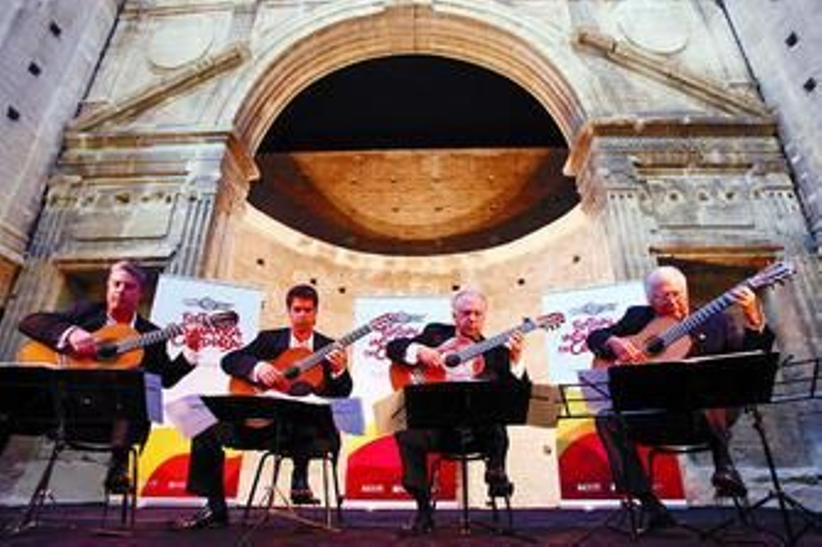 La sección clásica del Festival de la Guitarra regresó de nuevo el lunes a la Sala Orive para ofrecernos su quinta entrega. El cuarteto de guitarras formado por los hermanos Pepe y Celín Romero y por los primos Celino (hijo de Celín) y Lito (hijo de Ángel Romero, antiguo miembro de la formación) ofreció un variado y ameno recital muy aplaudido por los amantes de la guitarra que llenaban la sala. El programa consistió en cuatro obras para cuarteto (tres arregladas y una original), otras cuatro a solo (una por cada miembro de la formación) y un dúo.