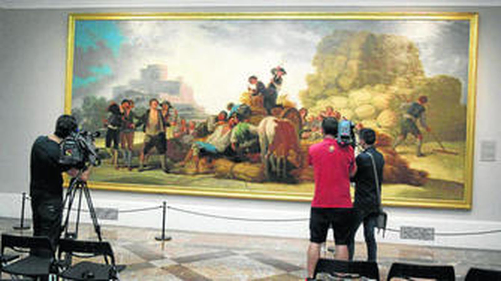 Desde el primer momento, el visitante puede contemplar tres de las obras más especiales de Goya, La cometa, Juego de pelota a pala y La era, recién restaurada y con un nuevo cuadro de madera dorada.