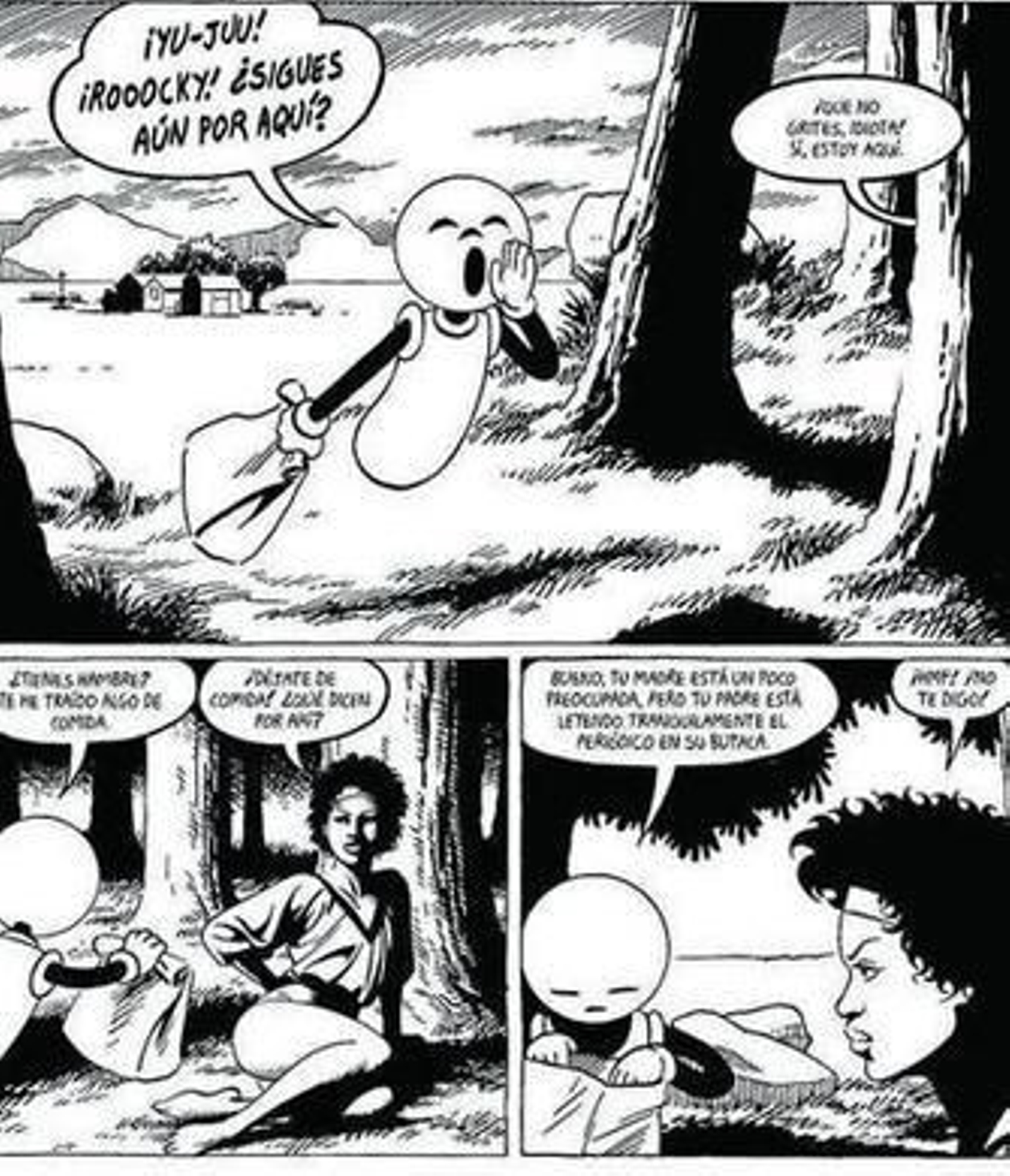 Y claro está que Fantagraphics hace su trabajo mejor que nadie, y a uno le encanta que se traduzcan sus títulos -ya puestos aprovecho para sugerir que alguien se anime con Supermen! The First Wave of Comic Book Heroes 1936-1941, recopilación de historietas de Lou Fine, Jack Cole, Basil Wolverton, Bill Everet… ¿Qué más se puede pedir?-, pero también se añora un poco de riesgo e imaginación por parte de los editores. De esto último ha hecho precisamente gala -otra vez- Fulgencio Pimentel, a quien se le ha ocurrido ahora recopilar en tomo la serie Rocky, un pequeño conjunto de historietas cortas de los primeros números de la mítica revista Love & Rockets, firmadas por el siempre excelente Jaime Hernández. Nunca antes habían sido editadas de manera exenta, así que no lo encontrarán -aún- en el catálogo de la citada editorial de Seattle, y es que lo que tenemos aquí es algo así como una primicia mundial. Lo que yo decía, imaginación.