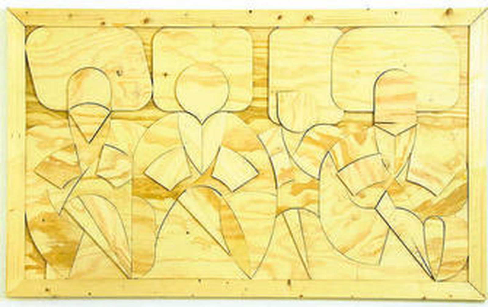 Este análisis de formas lo traslada el autor también a la imagen. Una novela corta de Tolstoi, Hadji-Murat, le llevó a los dibujos tardorrománticos de tipos caucasianos. Pereñíguez eligió algunas de sus formas, las modeló y dibujó, para enseguida trasladarlas a formas geométricas. Unos guerreros chechenos, rostros, atuendos y armas pierden todo naturalismo y se convierten en construcción geométrica. Dibujada primero, la construye después en exacto relieve de placas de madera superpuestas. Reduce el perfil de otro personaje a planos de matizado color y con ellos genera relieves en escayola y después en madera. Imaginando que estos podrían ser planchas que permitieran la impresión de la figura, ofrece cuatro imágenes de sutiles colores, estadios de una posible cuatricromía. Entre los dibujos encontrados había también dos jinetes. La figura vigilante de uno de ellos la descompone en sucesivas formas modulares, dibujando las más elementales sobre la pared de la sala, protegidas por un vinilo. El otro jinete, más heroico, lo reduce a exactas formas geométricas, triángulos y paralelogramos. Las muestra después en una atractiva metamorfosis: situándolas en dibujos sucesivos sobre un mismo horizonte, tales forman evocan la pintura de paisaje pero alineadas en madera sobre y bajo la figura del jinete hacen pensar en una suerte de cartel, un texto que, rodeando la estilizada figura del héroe, le rinde homenaje.