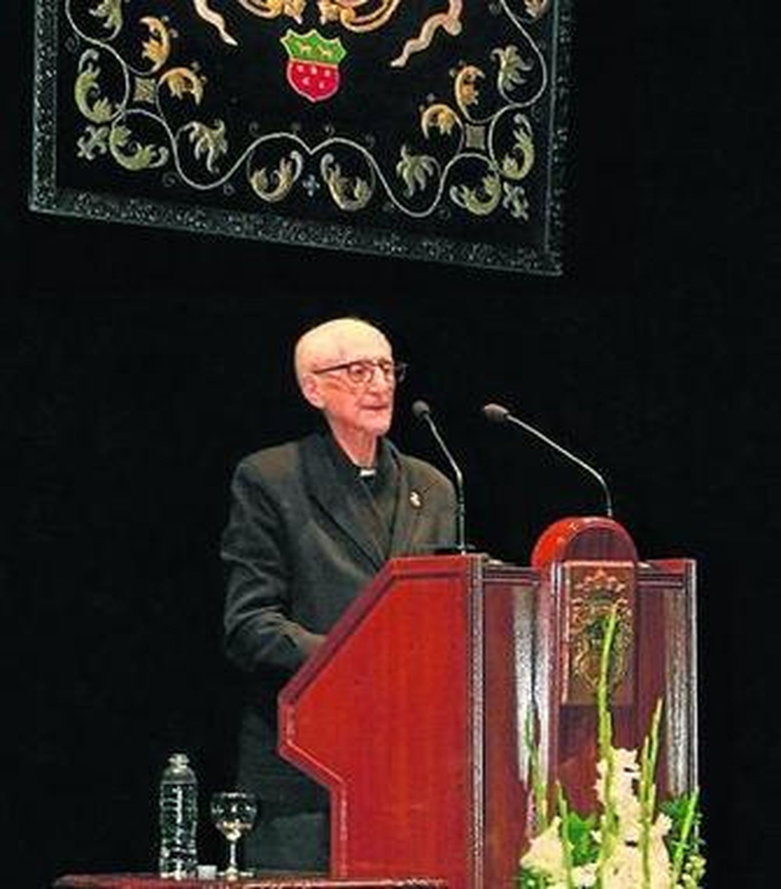 Un recorrido por el último siglo de la Semana Santa de Cabra. Así fue el pregón pronunciado por el sacerdote José Burgos, prieguense de nacimiento aunque egabrense de adopción, puesto que de sus 90 años "al menos 80 he pasado entre vosotros", destacó el párroco emérito de los Remedios, templo que presidió durante medio siglo. La presentación corrió a cargo del cofrade Antonio Ramón Jiménez, que repasó la dilatada trayectoria del pregonero, quien cuajó bellos versos dedicados a todas y cada una de las cofradías que hacen estación de penitencia durante los días santos. Pasaje especial fue el dedicado a la Virgen de la Soledad, dolorosa del Sábado Santo que preside la Parroquia de los Remedios y a la que, desde los diez años, Burgos acompañó como músico de la banda perteneciente a las escuelas del Ave María -donde desarrolló sus primeros años de formación académica-, como sacerdote y también, durante dos años, al frente de la cofradía como hermano mayor. "Permítanme que me extienda un poco más al hablar de la Soledad", rogó el pregonero a los presentes antes de desgranar un bello poema que compuso durante sus años de seminario inspirado en una fotografía de esta imagen.