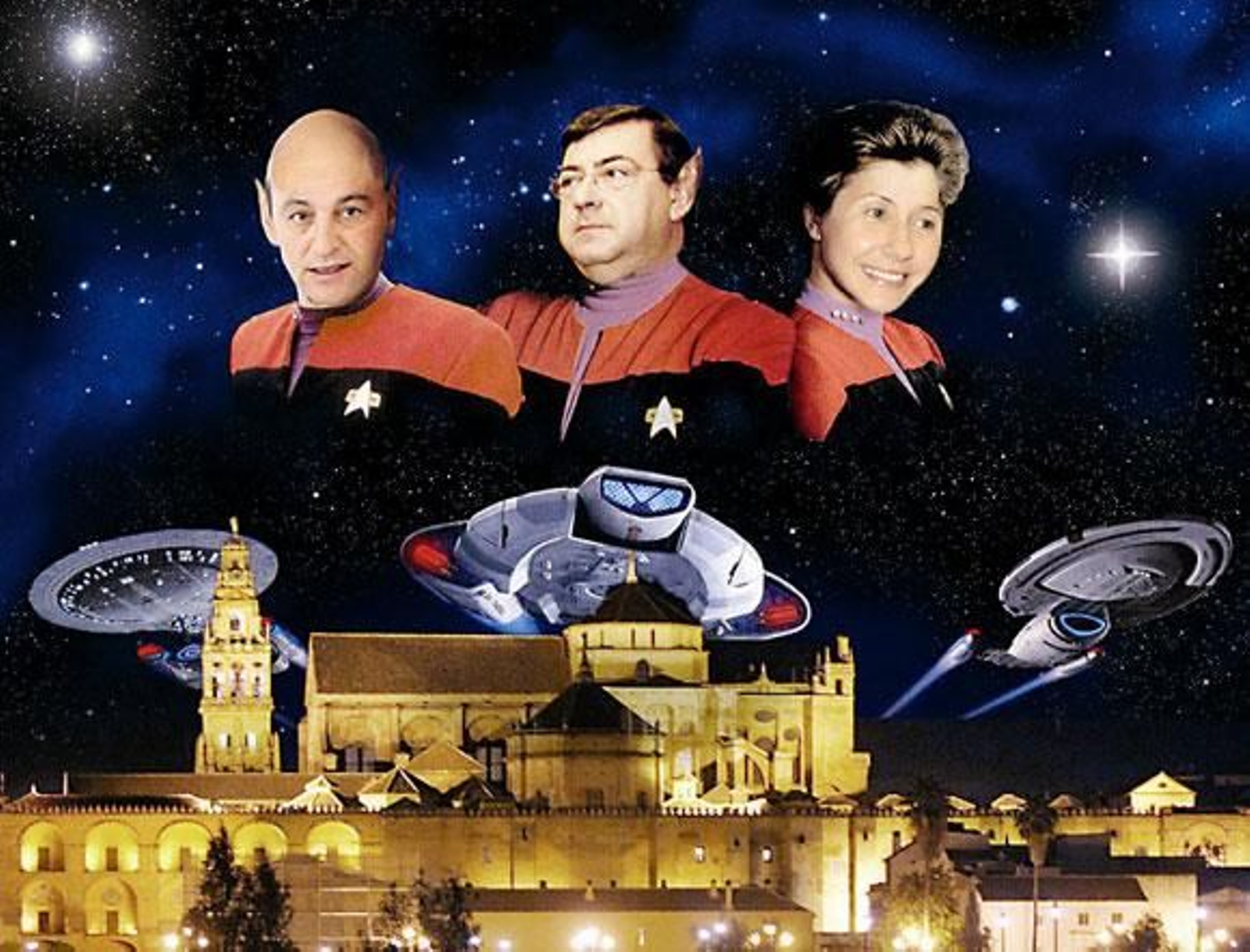 AÑO 2016. Nave Córdoba Enterprisse. El Consorcio y el Patronato Provincial de Turismo presentan la expedición cordobesa a Fitur. El concejal capitalino, Francisco Tejada, anuncia la eterna novedad: "Este año sí. Este año podemos decir que vamos a tener listo el espectáculo multimedia de luz y sonido de la Mezquita. Sí, aquel que un día anunció a bombo y platillo mi abuelo y que hoy, gracias a las nuevas tecnologías, váis a conocer de forma tridimensional".