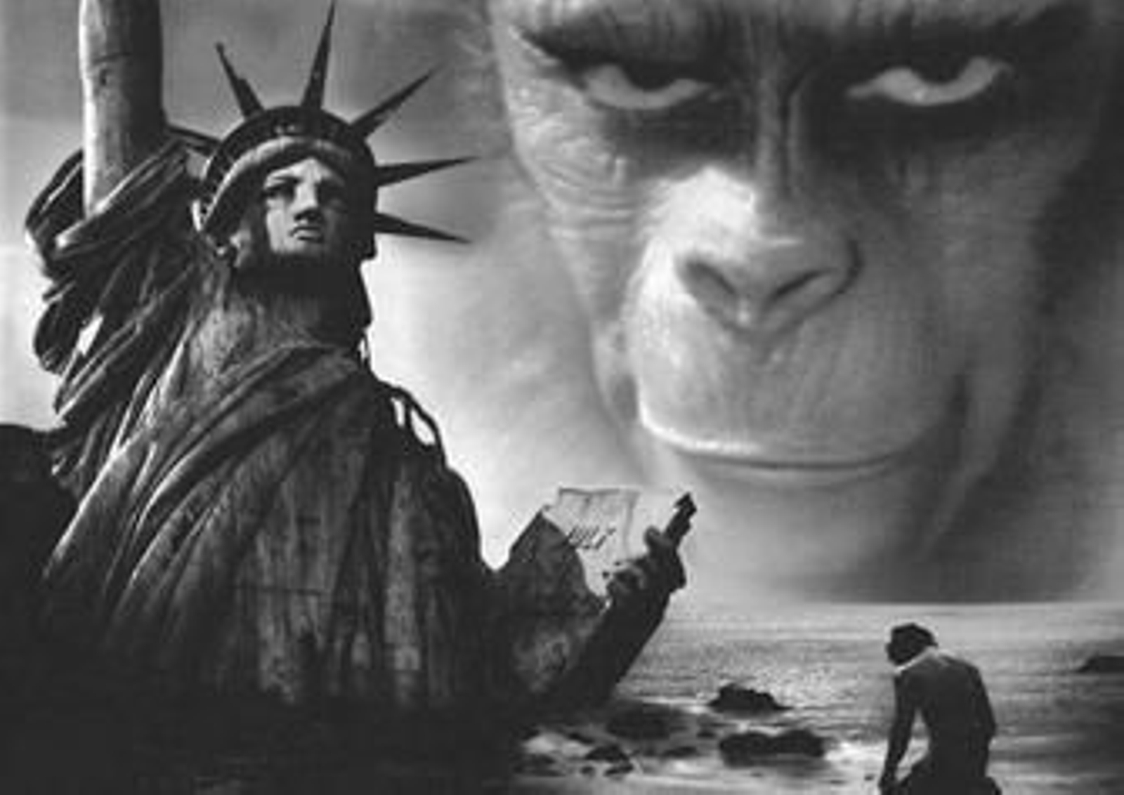 Tuvimos problemas en la nave, avistamos por fin tierra e hicimos un aterrizaje forzoso en un planeta desconocido. Sin que nos vieran, hemos inspeccionado los alrededores y descubierto que en este planeta los seres inteligentes y especie dominante son unos simios que comparten características físicas con los chimpancés (que son los civiles), gorilas (los militares) y orangutanes (los religiosos y políticos). Se trata de una civilización antropizada y militarizada, que además habla en español. Todo indica que es un planeta muy mono en el que el progreso ha brillado por su ausencia por las pocas ayudas de quien mandaba y ha acabado bajo el yugo simio.