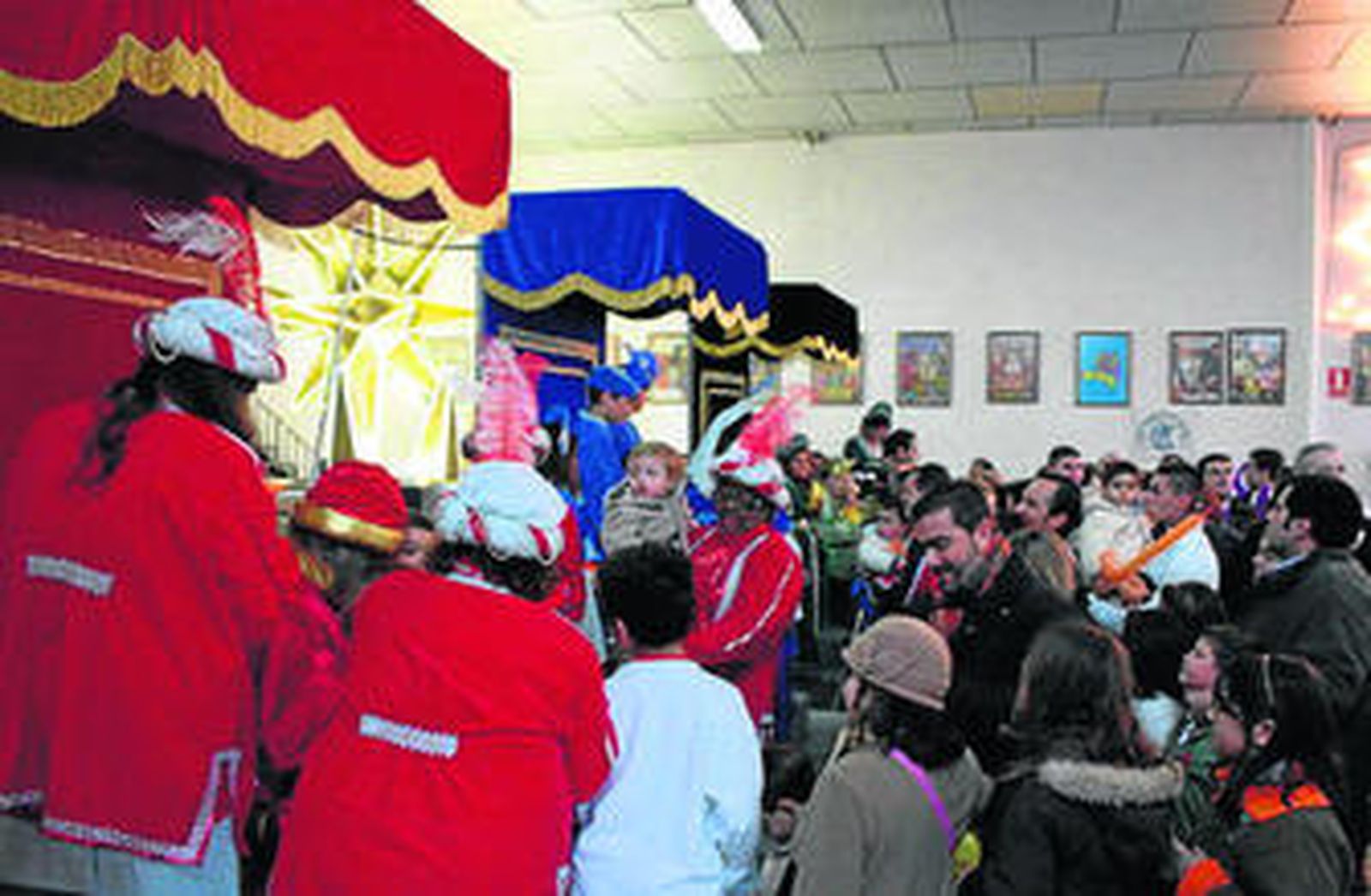 Sentados en las piernas de los embajadores, algunos reían, otros transmitían peticiones para los Reyes y los menos lloraban. Niños de todas las edades, desde bebés de apenas unos días hasta otros con edades bien entradas en la adolescencia, todos aguardaban su turno, mientras que los papás y abuelo, cámara de fotos en mano, esperaban pacientemente para inmortalizar el momento. Así, las nave situada en la calle del Bronce y alrededores se convirtió en un hervidero de gente.